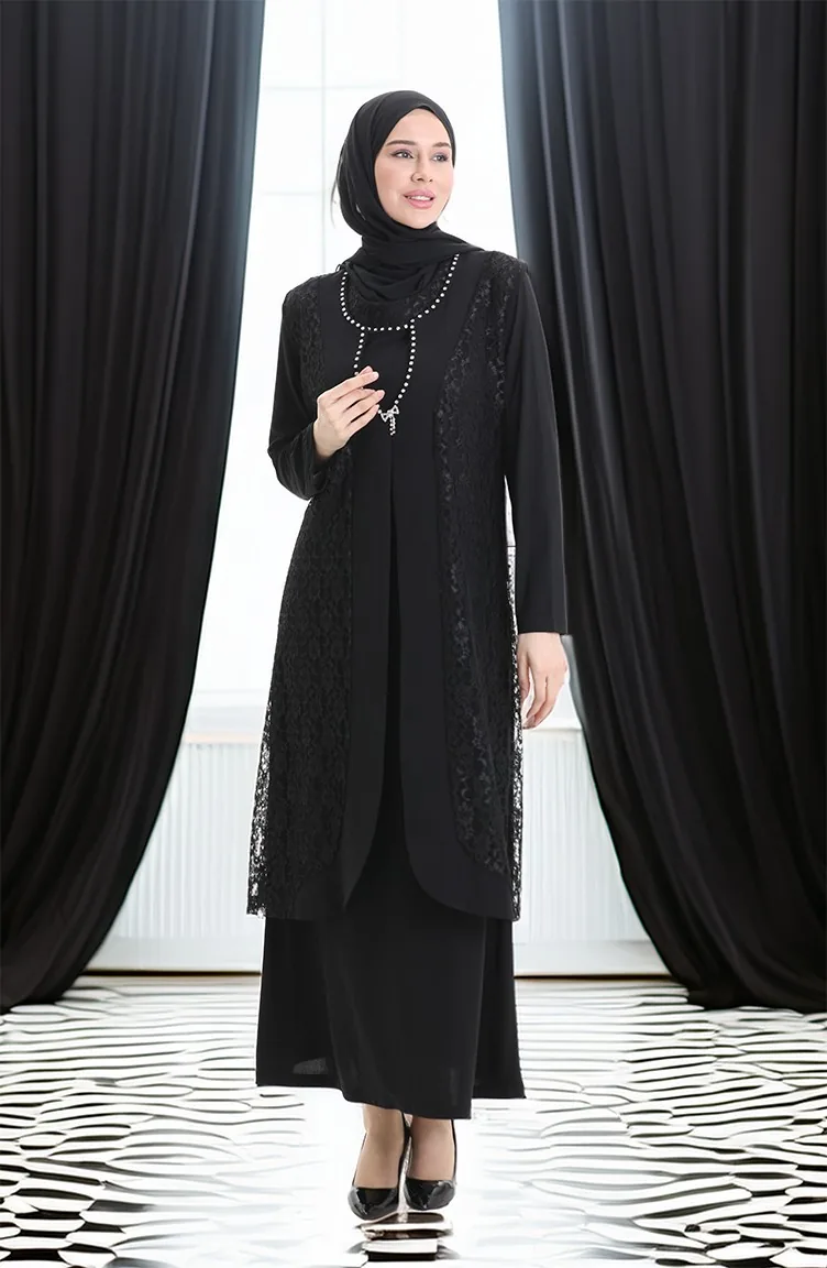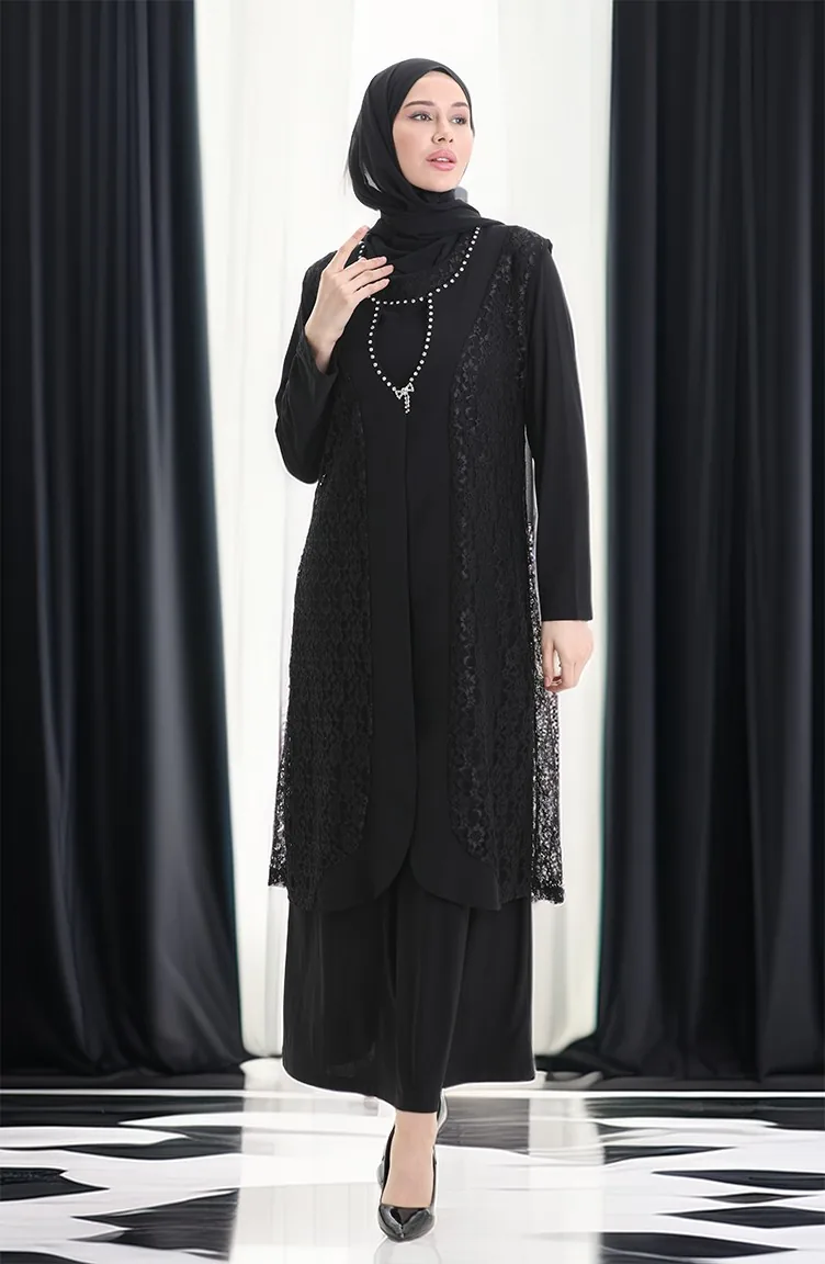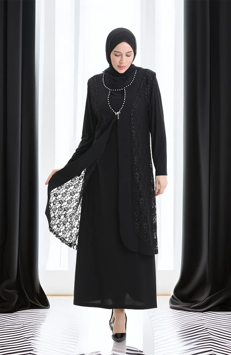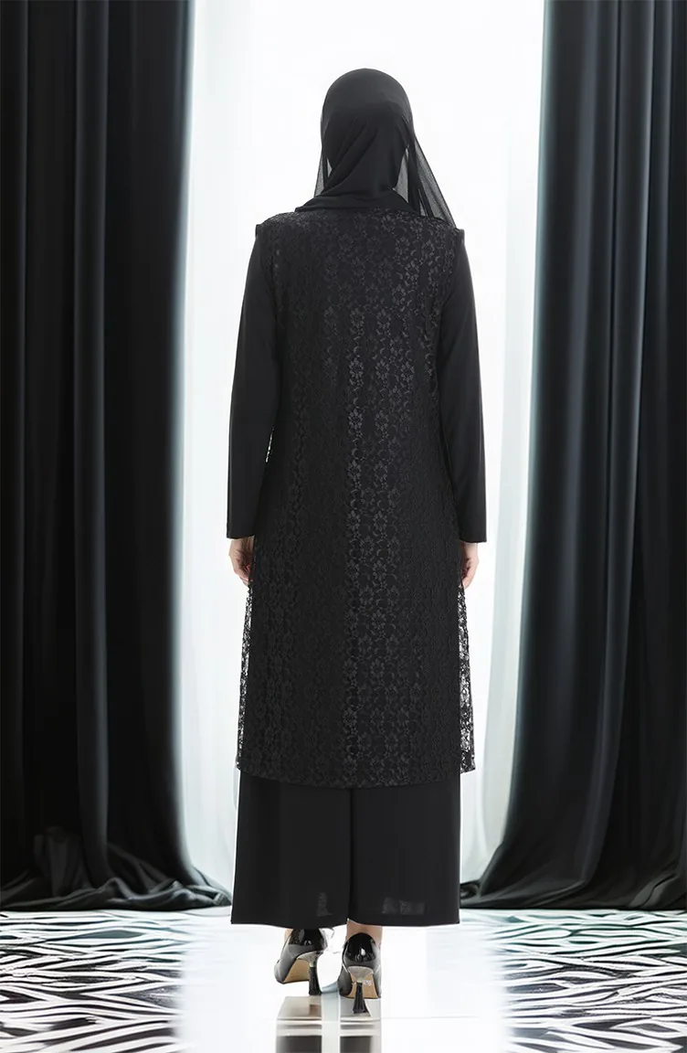Ensemble Deux Pièces Grande Taille Avec Robe Gilet En Dentelle 4123-01 Noir 4123-01