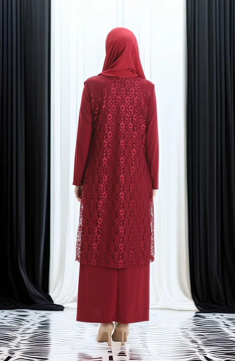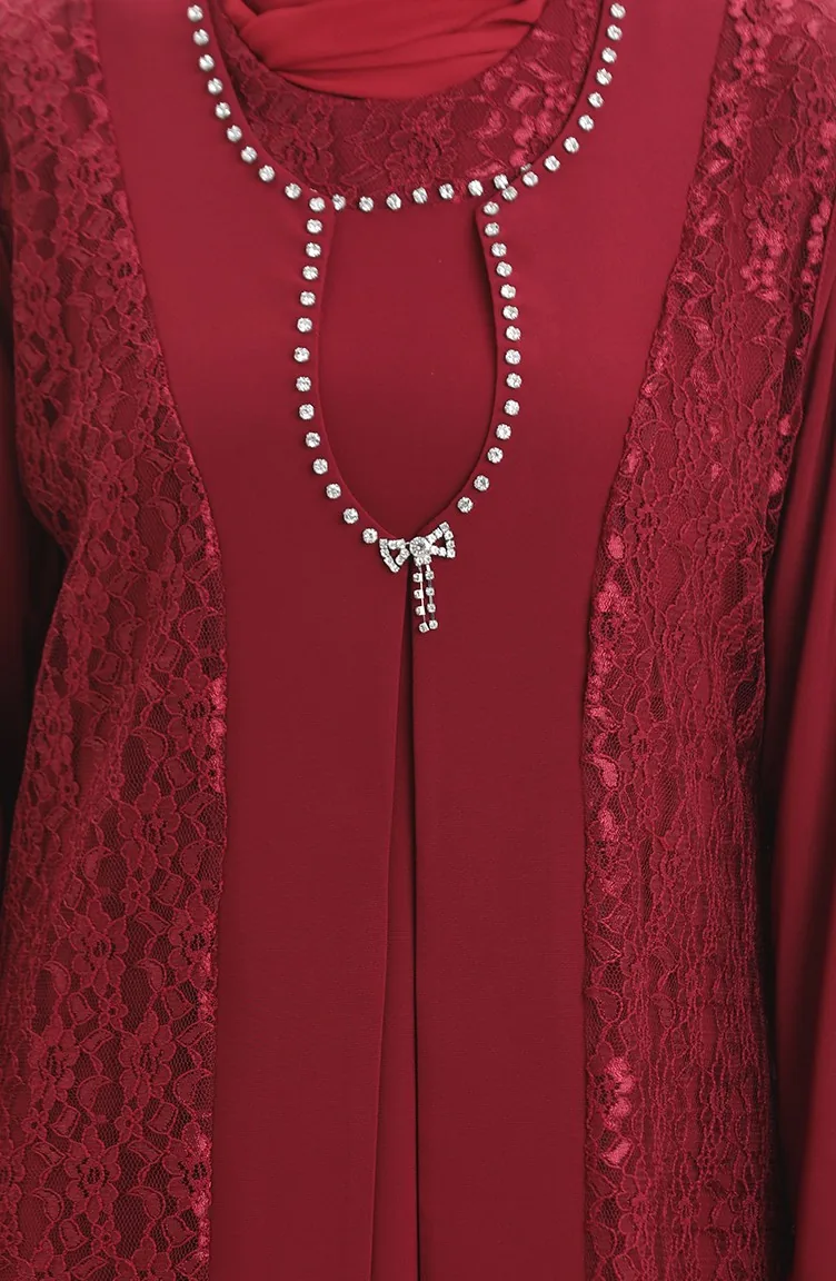 Ensemble Deux Pièces Grande Taille Avec Robe Gilet En Dentelle 4123-03 Bordeaux 4123-03