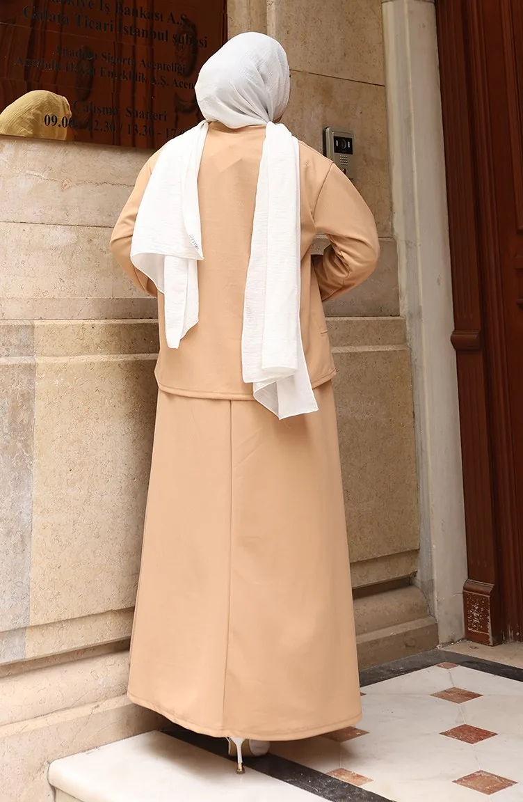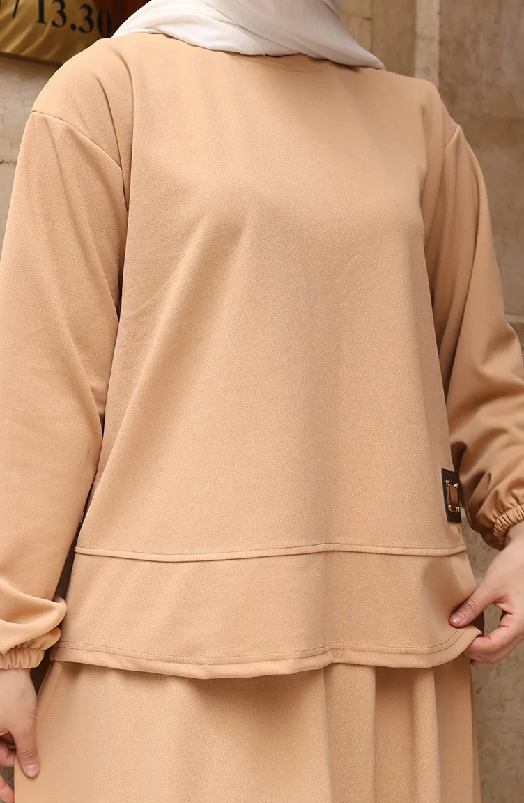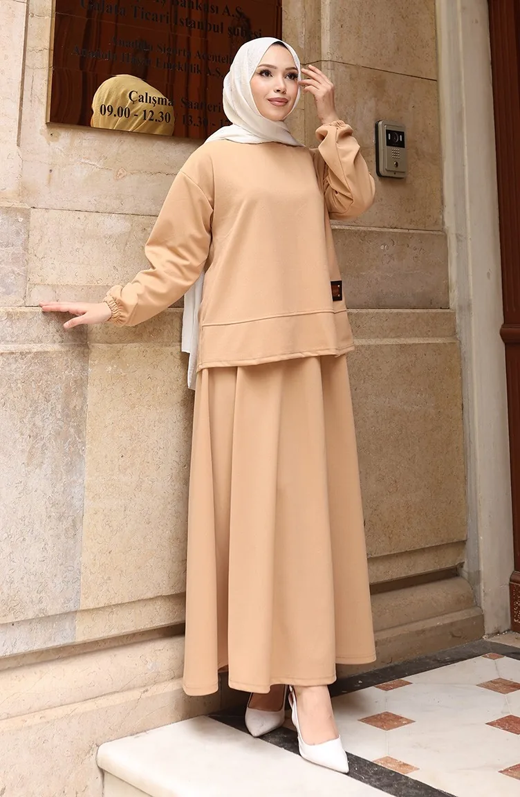 Ensemble Deux Pièces Jupe Tunique Hijab En Tissu Scuba 0221-02 Café Au Lait 0221-02