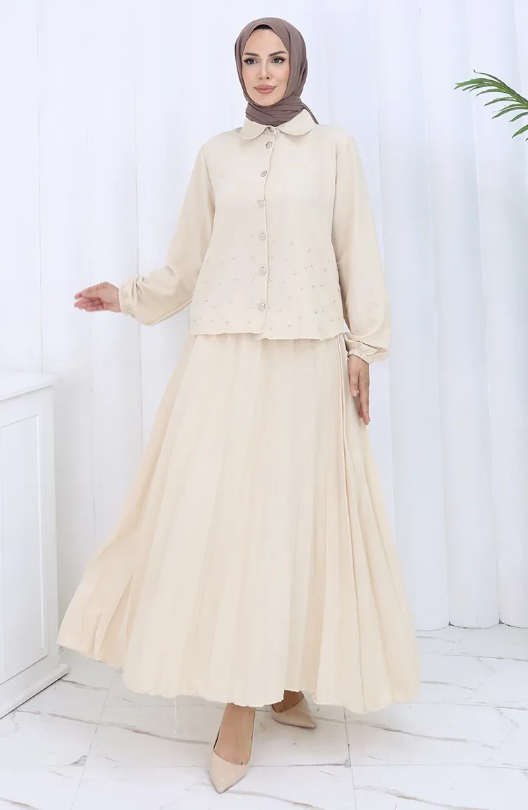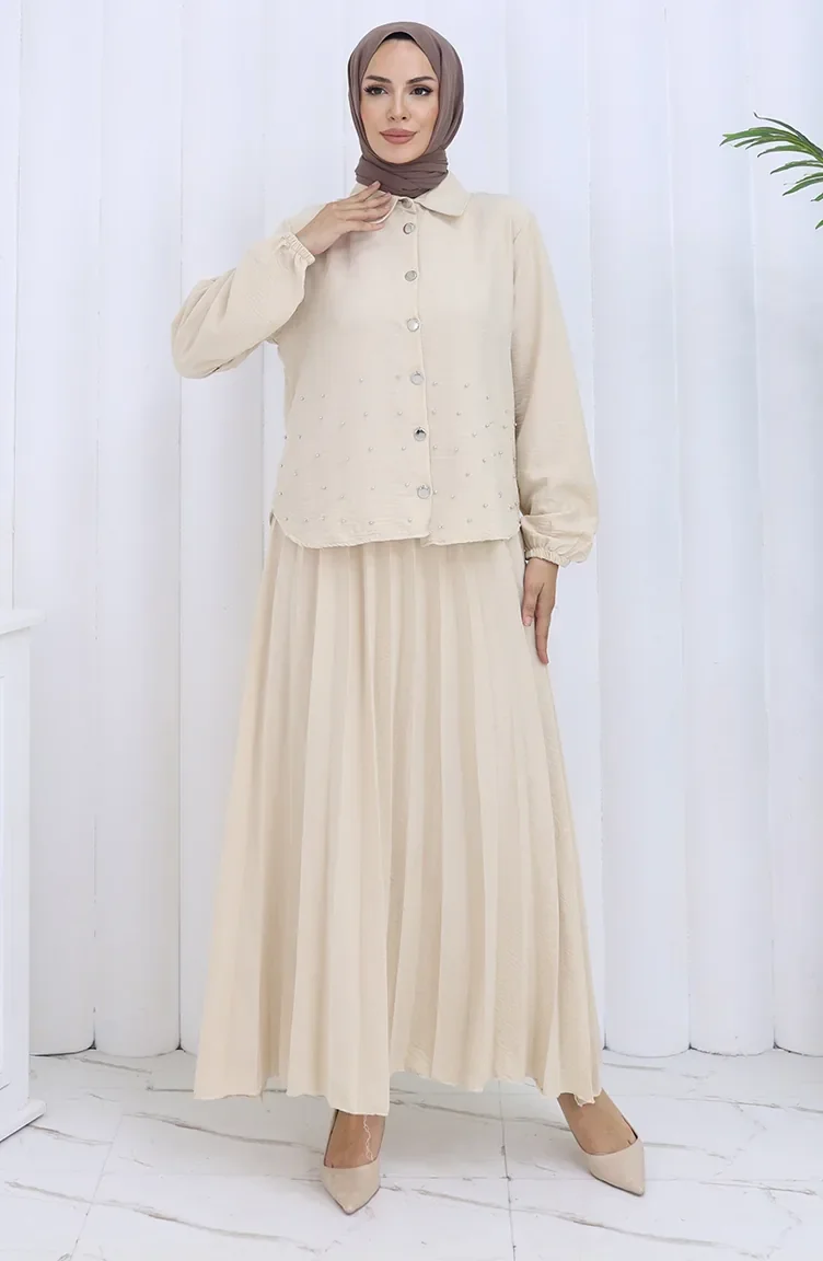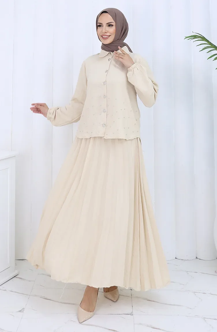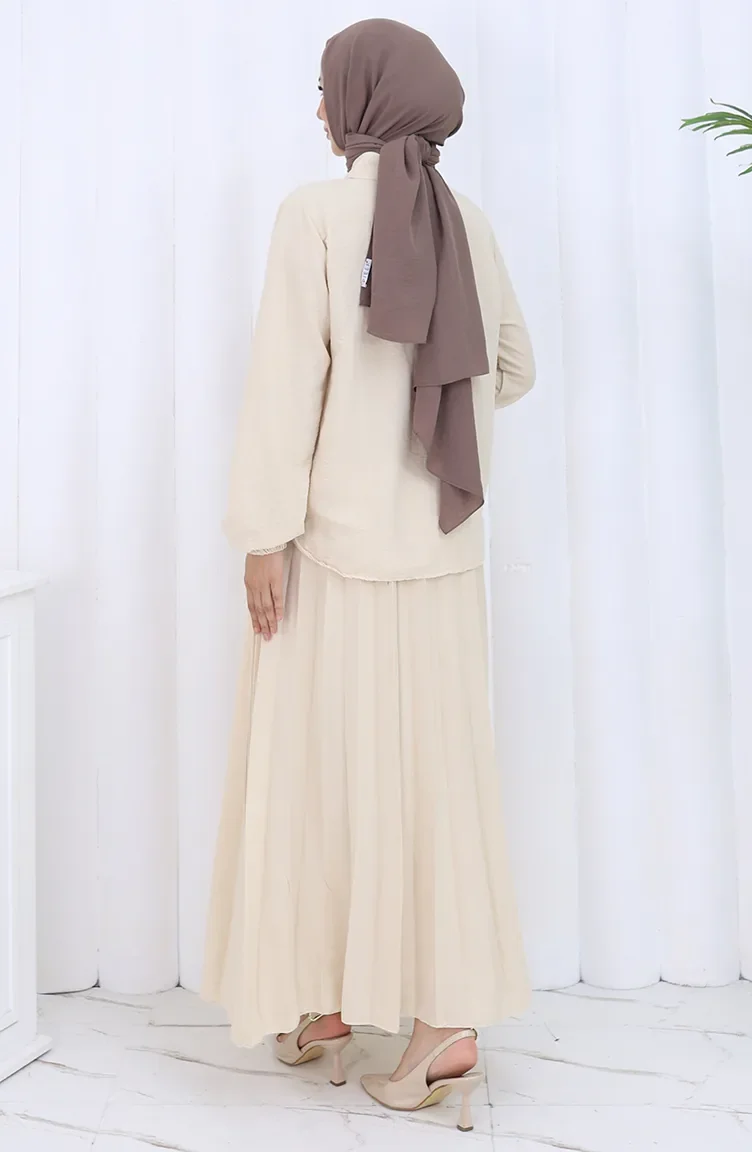 Ensemble Deux Pièces Tunique Et Jupe Boutonnée à Lanières 2115-06 Vison 2115-06
