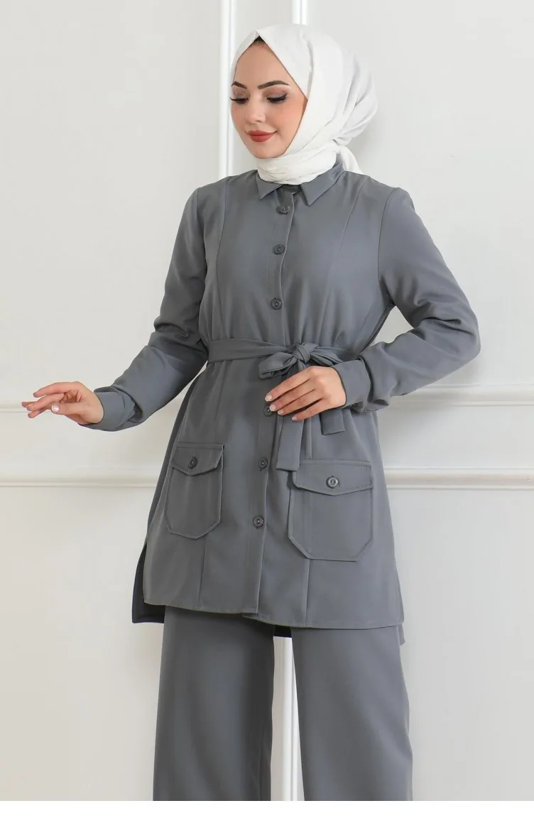 La couleur Gris. Tissu polyester. Simple. Adapté pour les 4 saisons. Option de grande taille disponible.