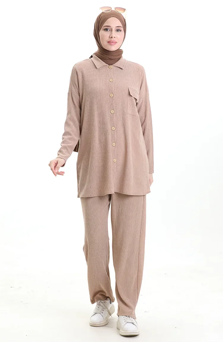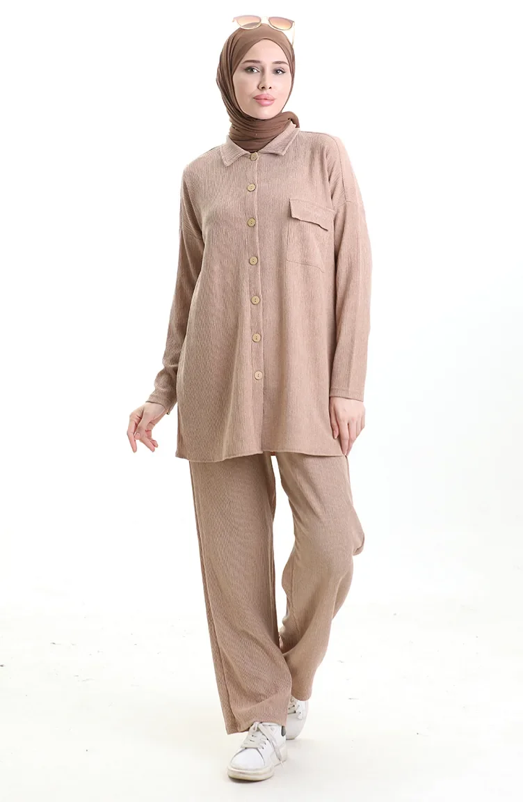 Costume Deux Pièces Avec Chemise à Poches 20050-01 Vison 20050-01