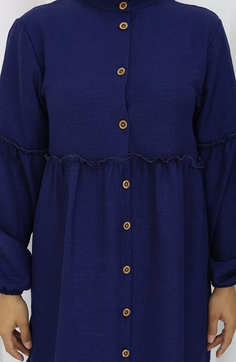 Costume Deux Pièces Tunique Boutonnée Froncée 0115-06 Bleu Marine 0115-06