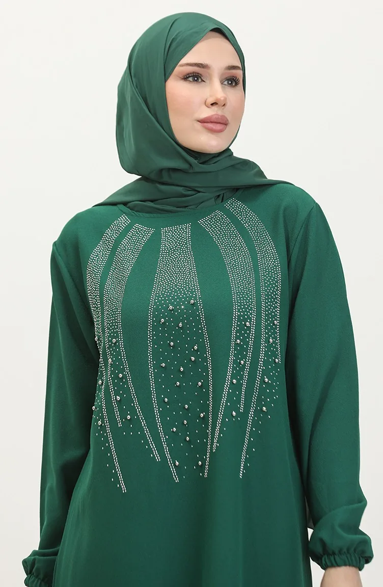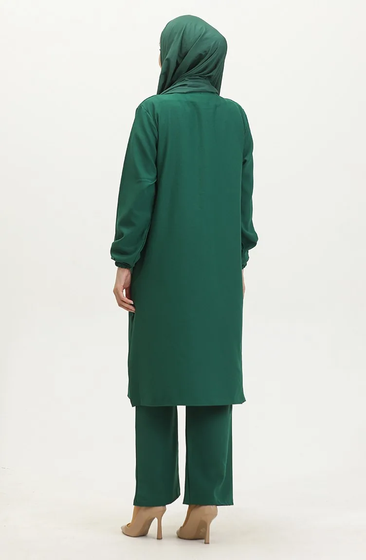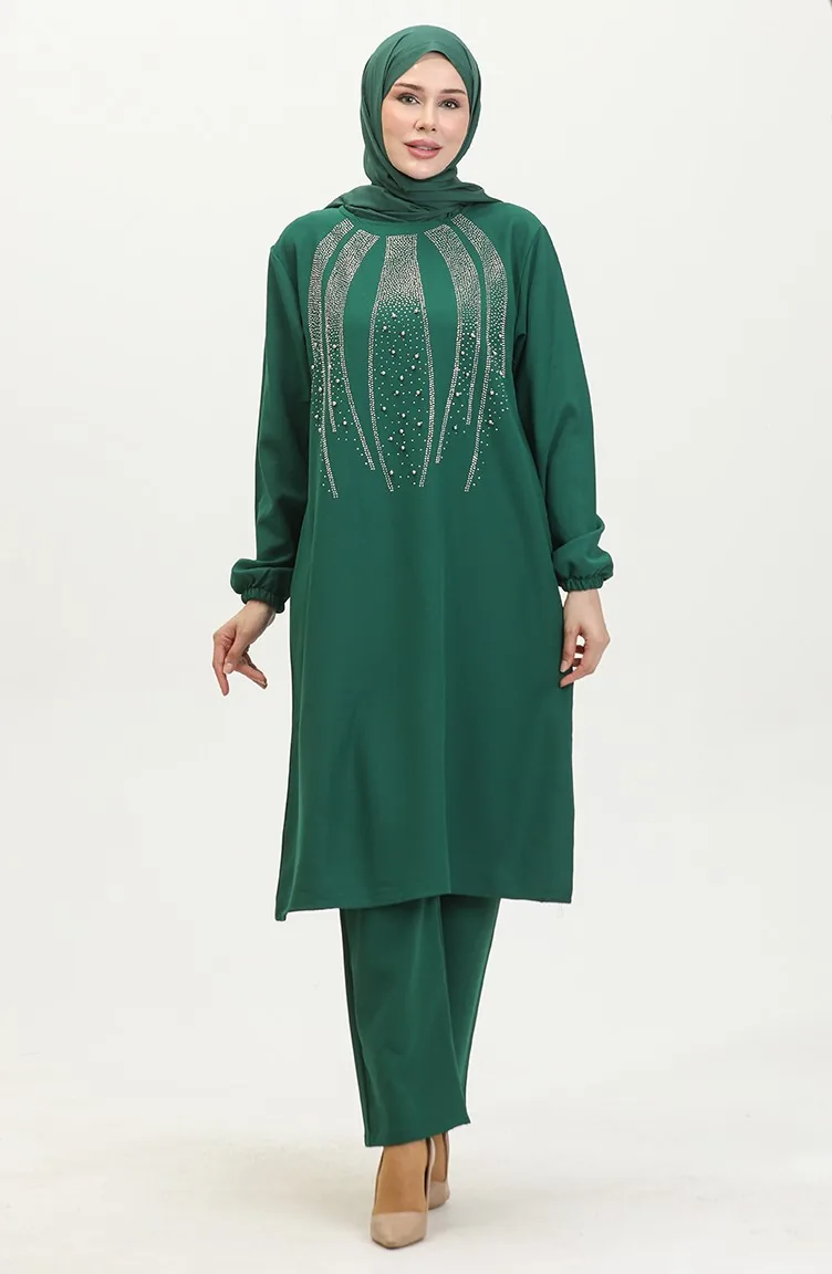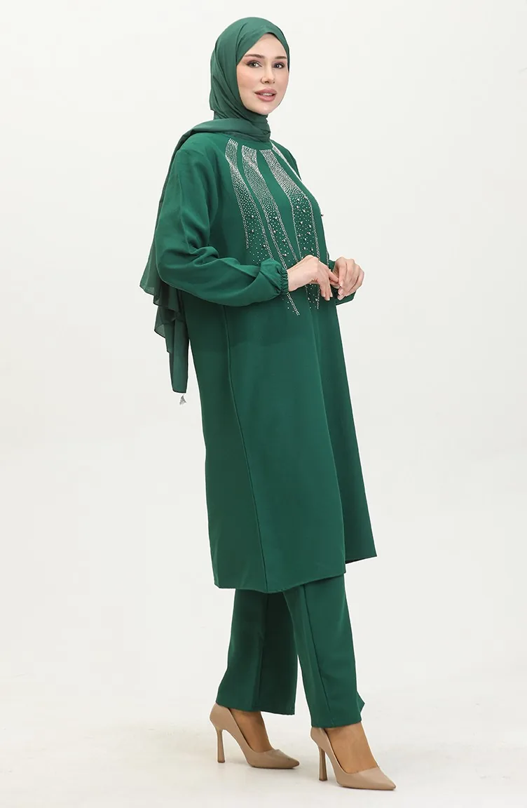 Ensemble Deux Pièces Robe De Soirée Tunique Pantalon Imprimé Pierre 0410-01 Vert Emeraude 0410-01