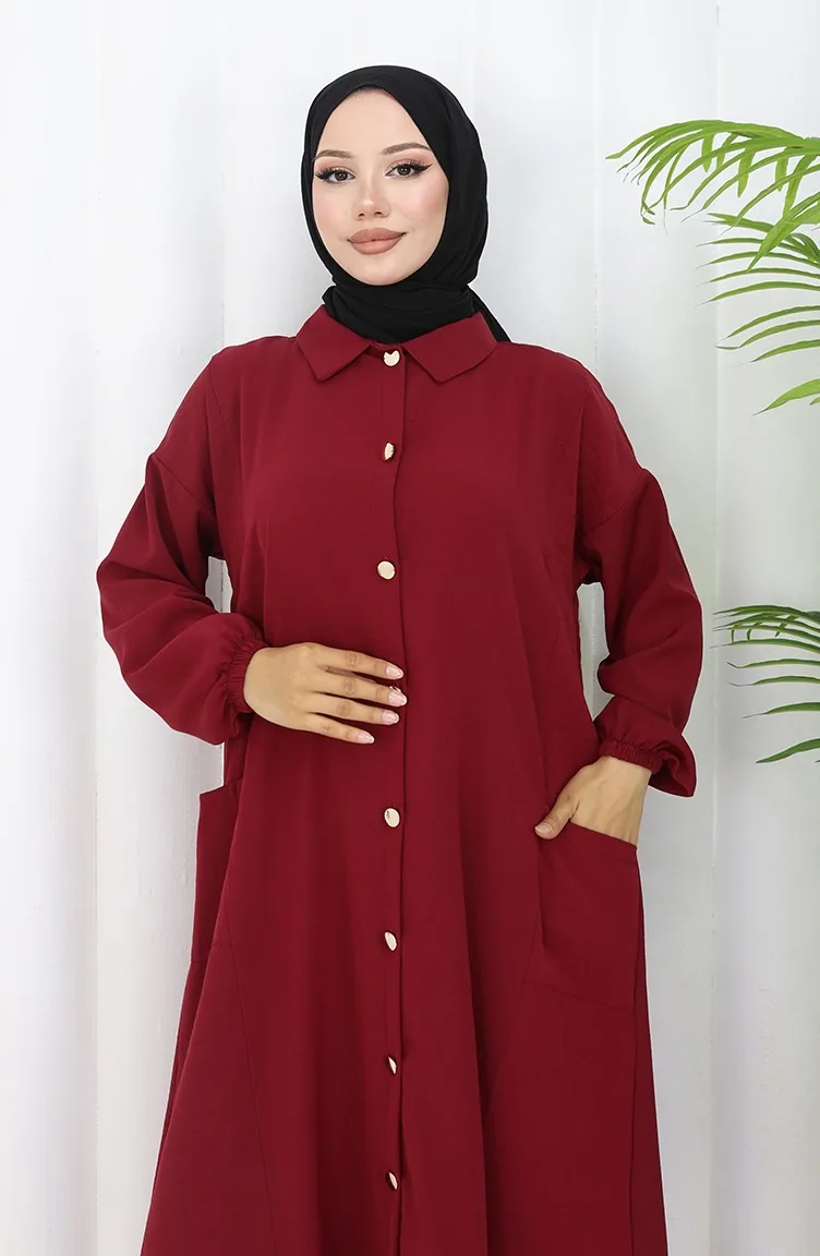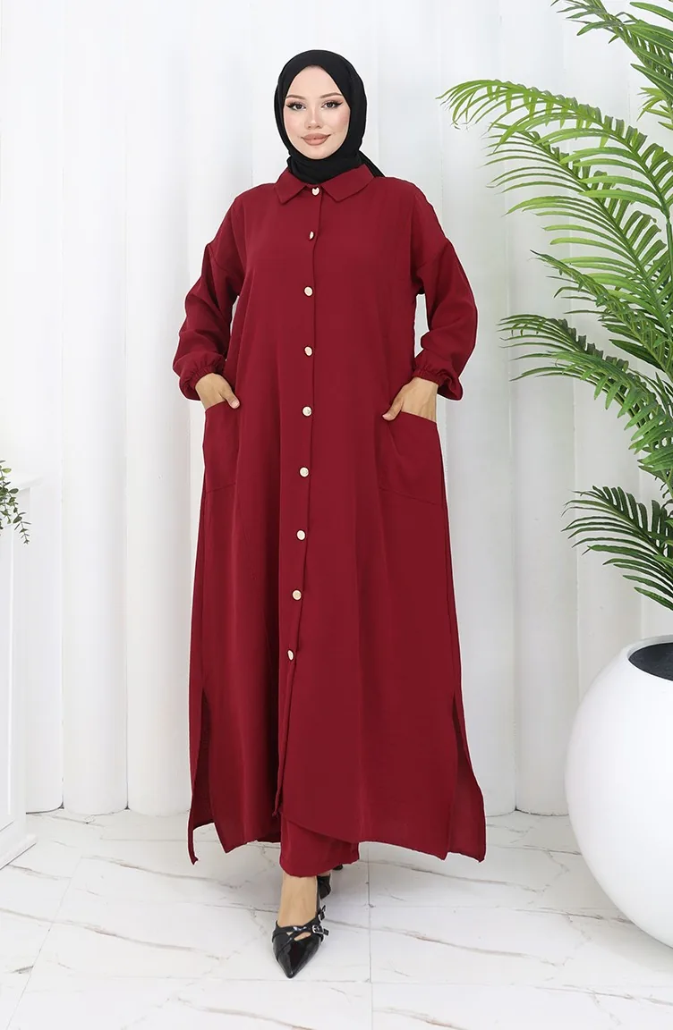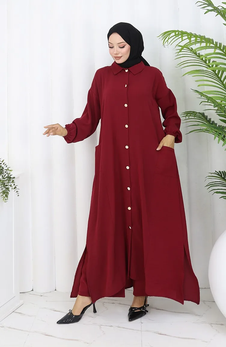 Ensemble Deux Pièces Tunique Et Pantalon à Boutons-pression 0097-03 Bordeaux 0097-03