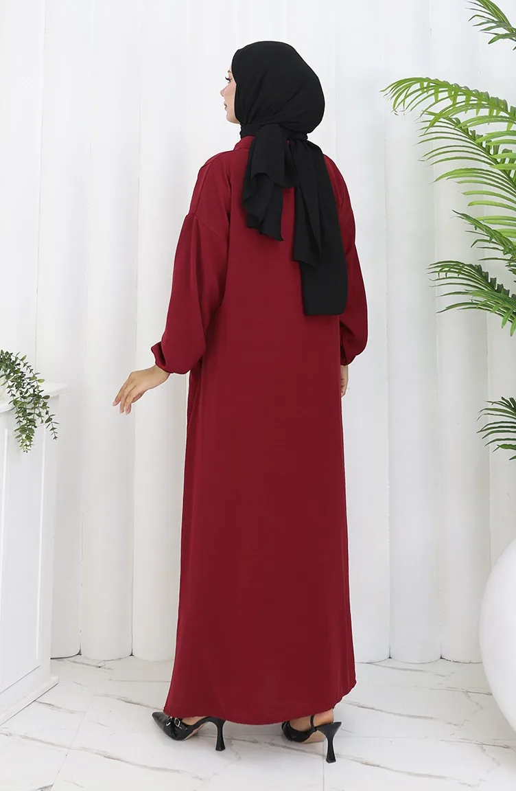 Couleur bordeaux. Tissu de coton. Simple. Avec boutons. Manches élastiques. Col Chemise. Adapté pour les 4 saisons. Option de grande taille disponible.
