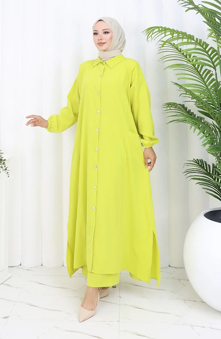 Ensemble Deux Pièces Tunique Et Pantalon à Boutons-pression 0097-05 Vert Pétrole 0097-05