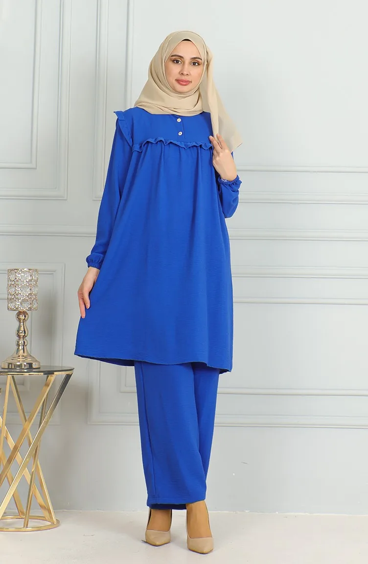 Ensemble Double Pantalon Tunique à Froufrous En Tissu Aerobin 1009-02 Saks 1009-02