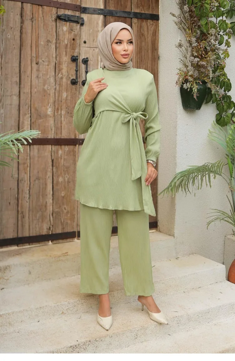 Ensemble Hijab Menthe Noué Sur Le Côté 576