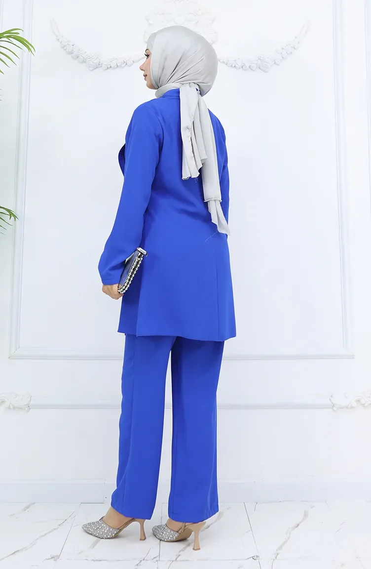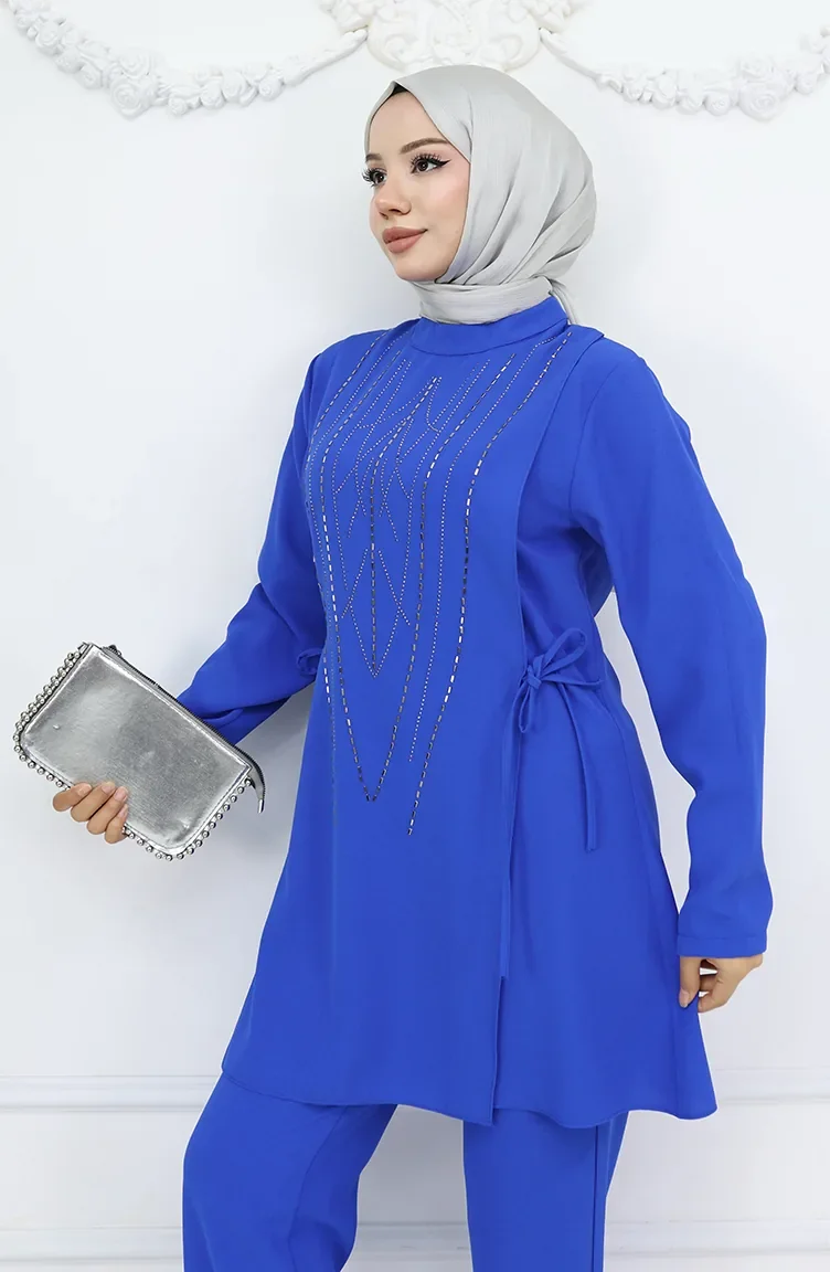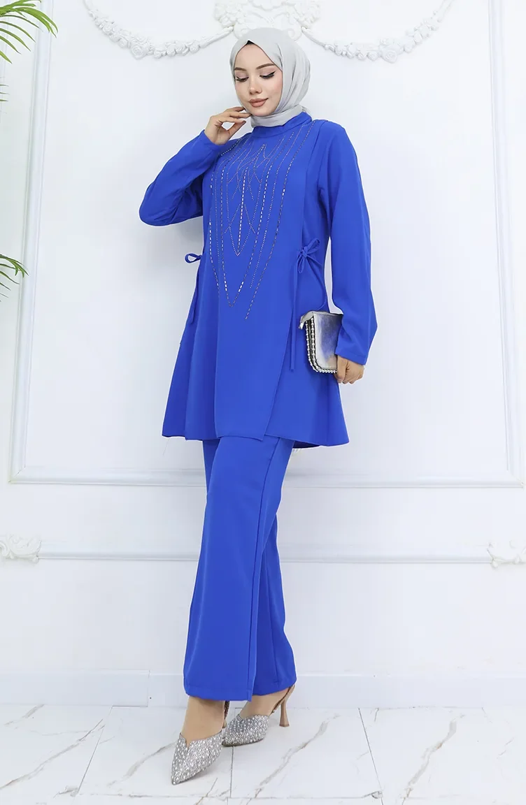 Ensemble Tunique Et Pantalon De Soirée à Nouer Sur Le Côté Pierre 6123-06 Saxe 6123-06