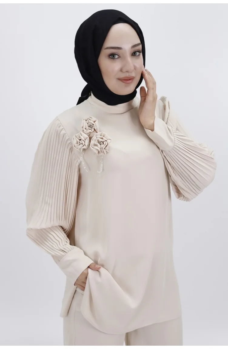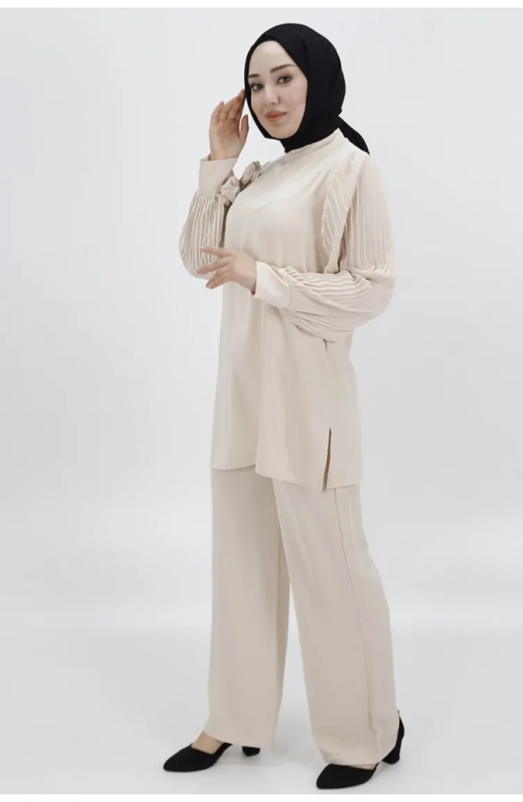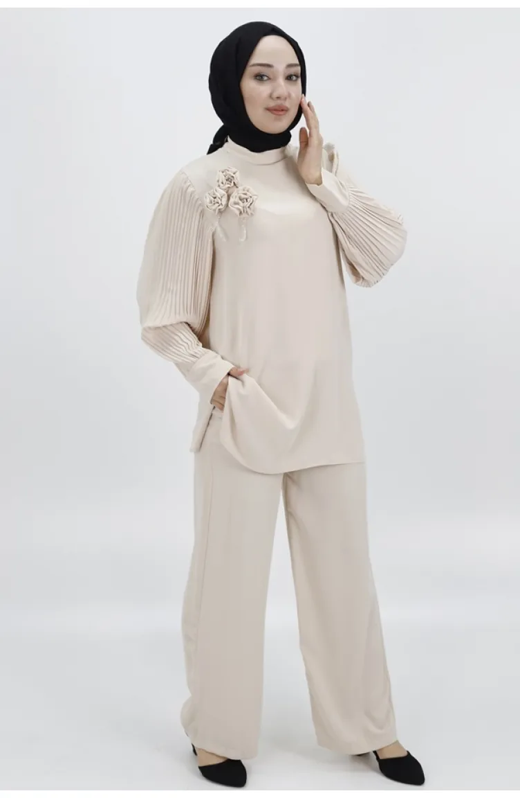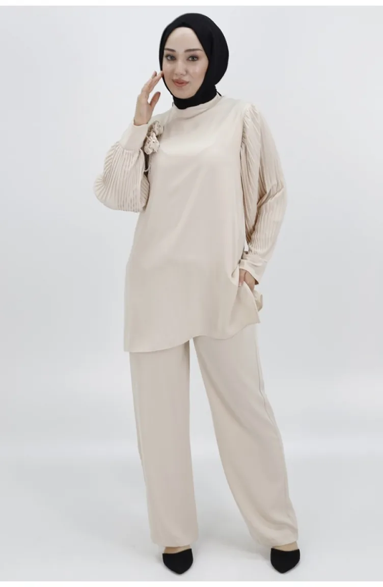 Jessica kumaşının zarif dokusuyla tasarlanmış bu ikili takım, öne çıkan pilili kolları ve zarif broş detayıyla dikkat çekiyor. Modern tasarımıyla öne çıkan bu takım, şıklığı ve zarafeti bir araya getiriyor. Hem günlük kullanıma hem de özel günlerde tercih edilebilecek şık bir seçenek ürün ölçüleri; üst; göğüs:48 bel:52 basen:58 boy:80 alt; bel:38 basen:46 boy:108 manken ölçüleri boy:168cm,göğüs:85,bel:65,basen:90,kilo:55