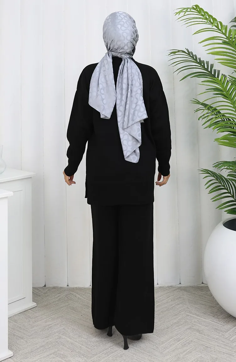 Ensemble Deux Pièces En Tricot Avec Poche Et Perles Tunique Et Pantalon 1070-06 Noir 1070-06
