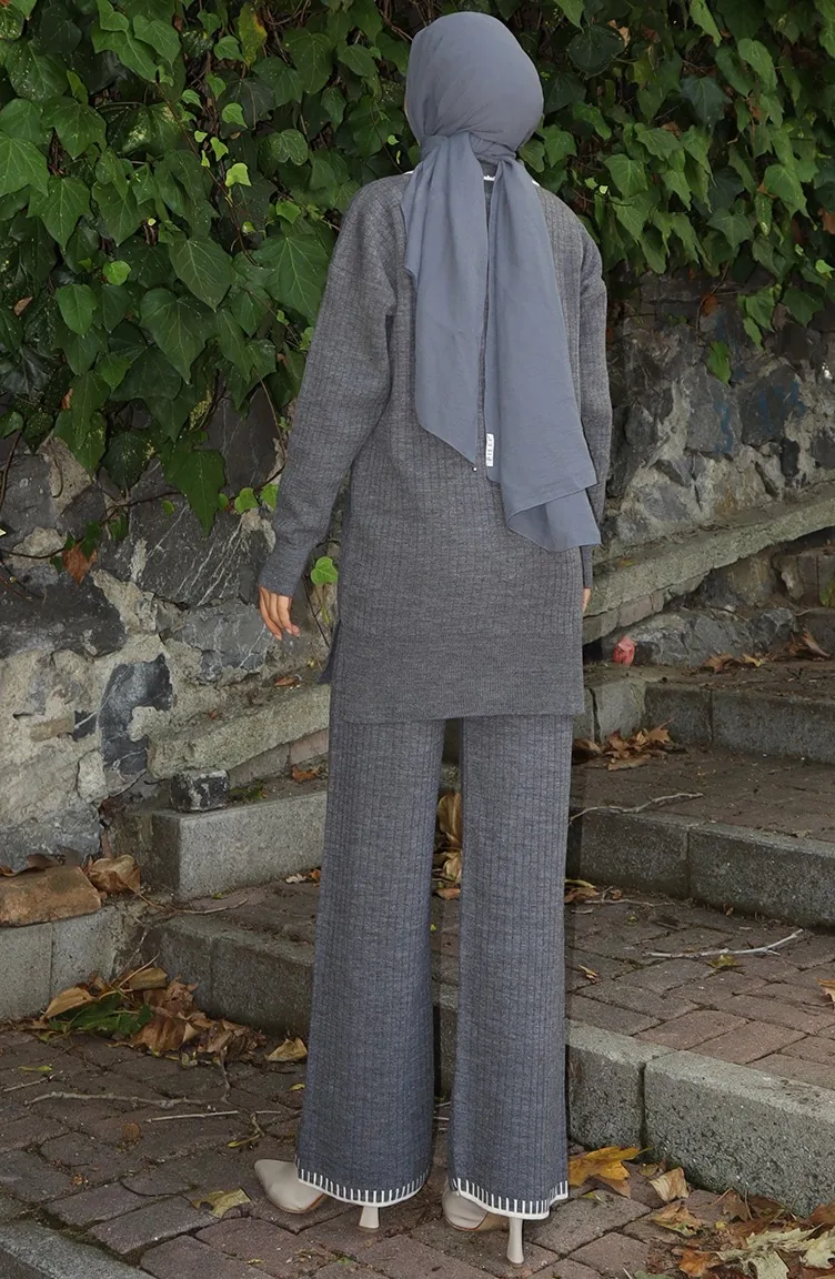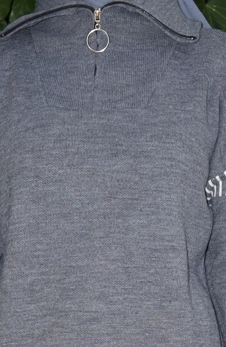 Ensemble Deux Pièces En Tricot Tunique Et Pantalon à Col Zippé 1061-07 Gris 1061-07