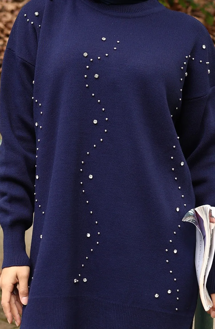 Couleur Bleu Marine. Tissu acrylique. Simple. Tunique. Hivernal. 36-42 tailles appropriée.