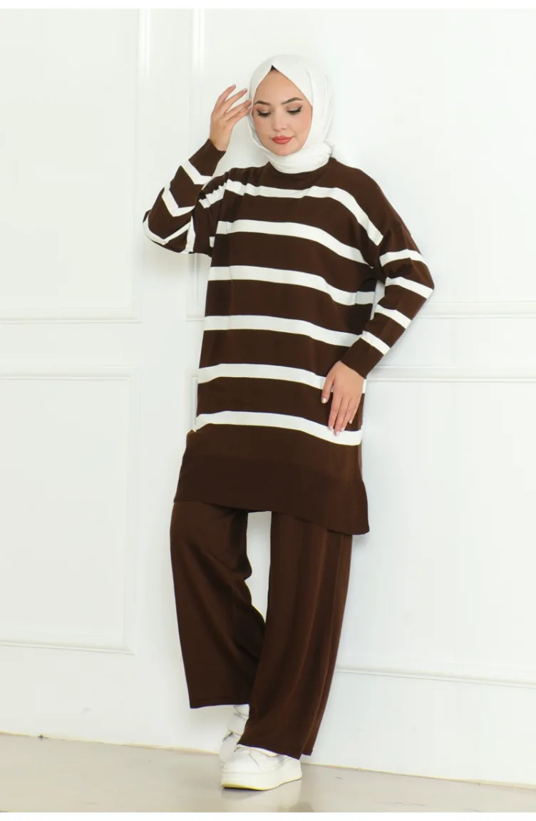 Ensemble Tricot Elégant à Rayures 153-06 Marron 153-06
