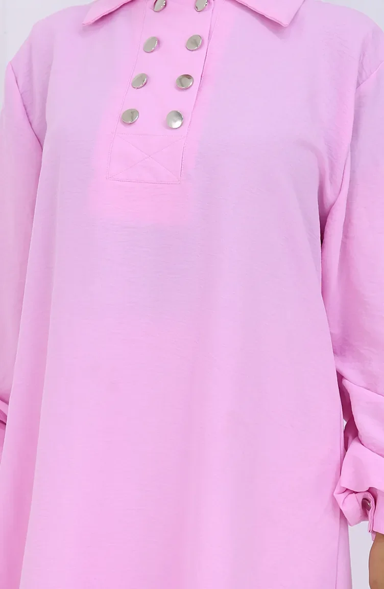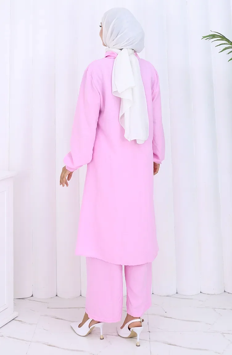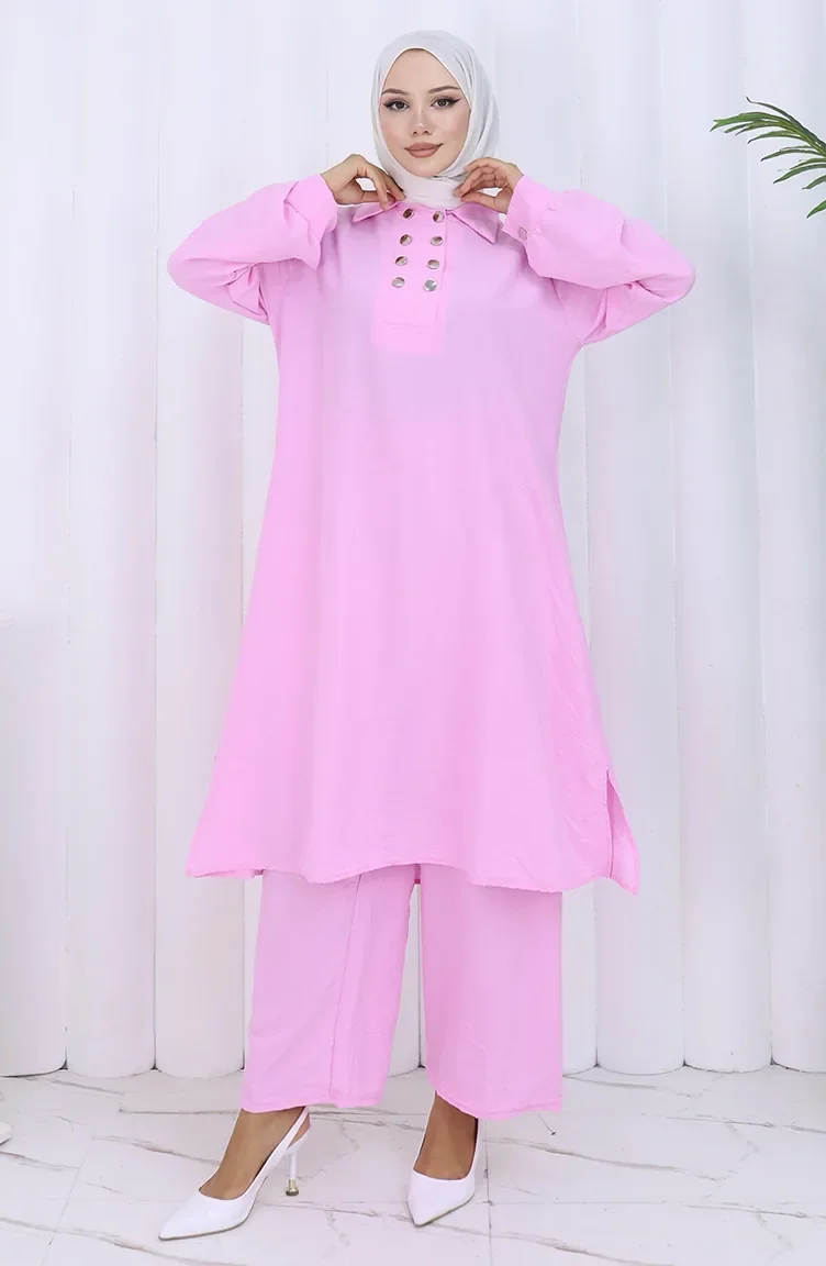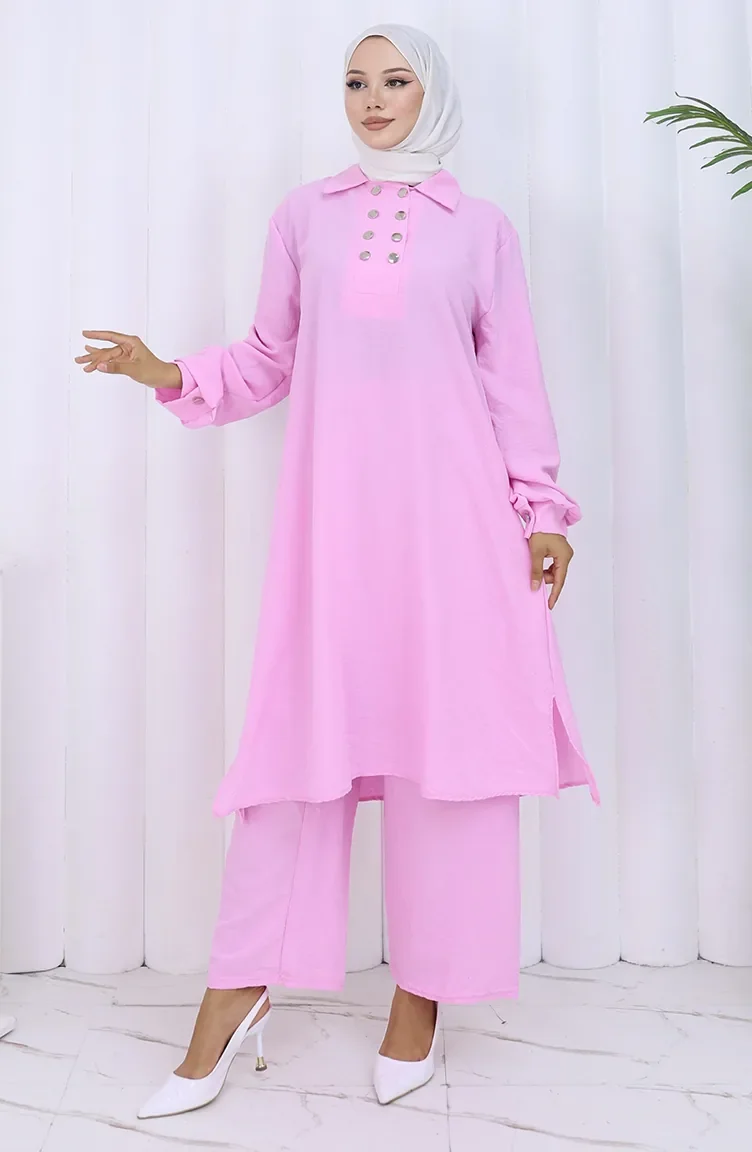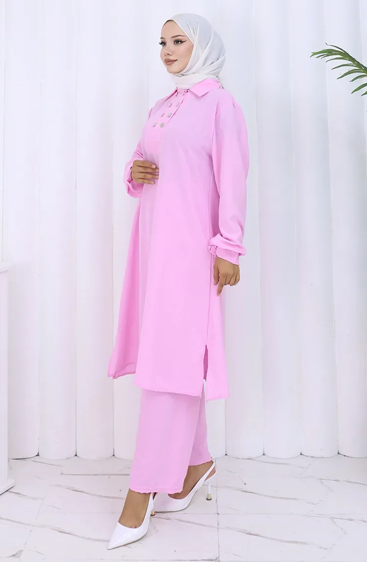 Ensemble Deux Pièces Tunique Et Pantalon à Double Boutonnage 2118-03 Rose 2118-03