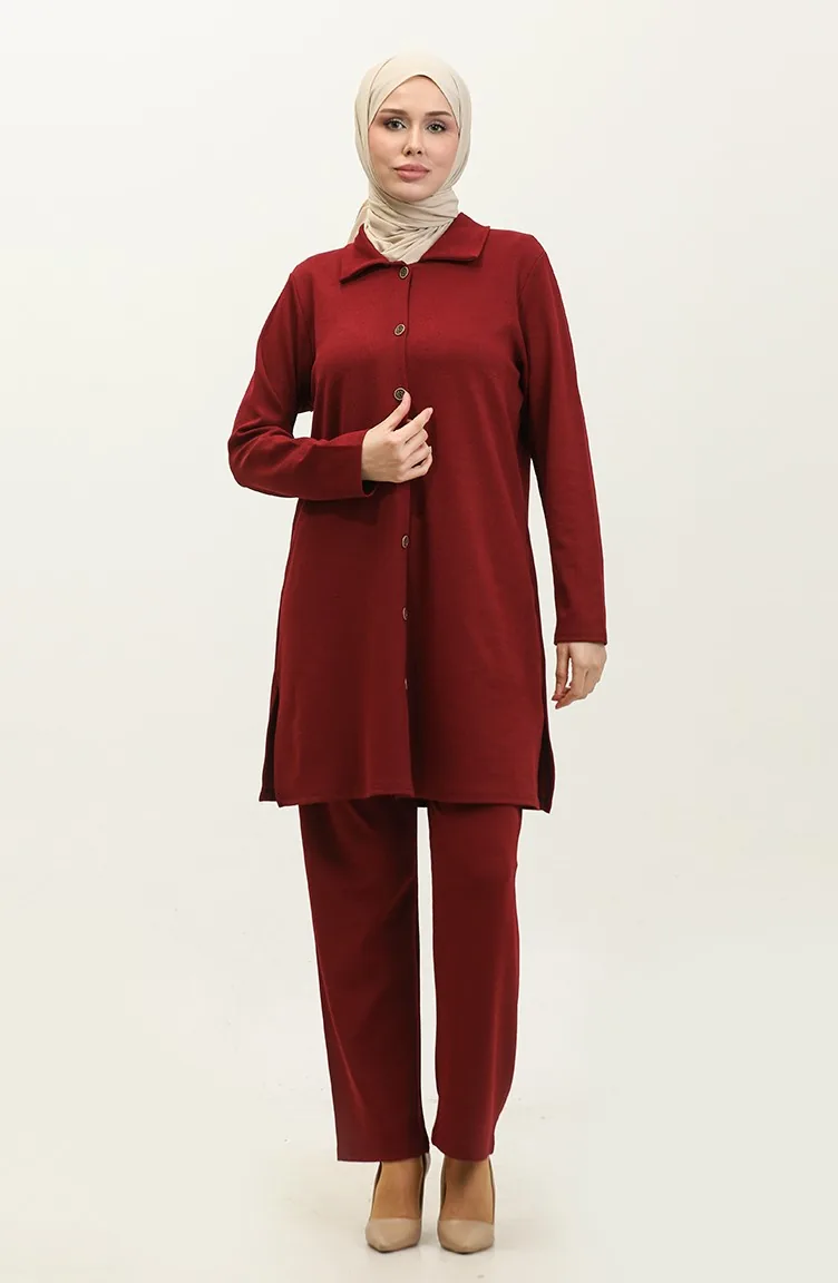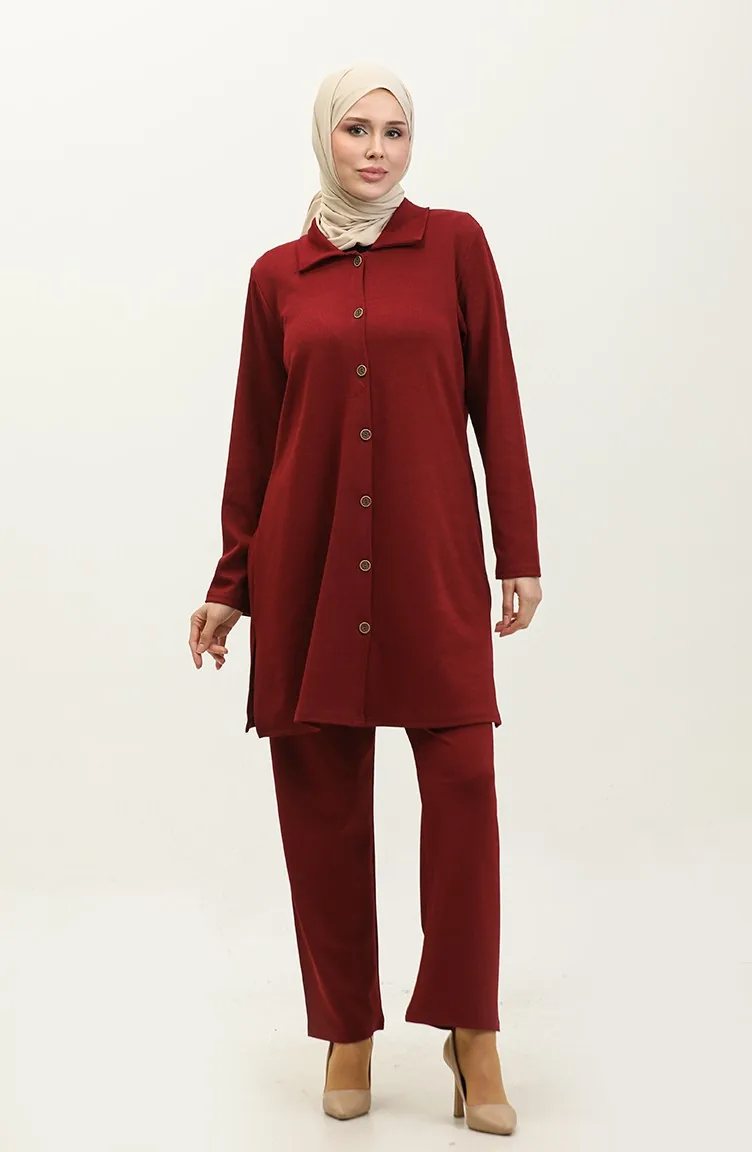 Ensemble Deux Pièces Tunique Et Pantalon Asya 2611-07 Bordeaux 2611-07