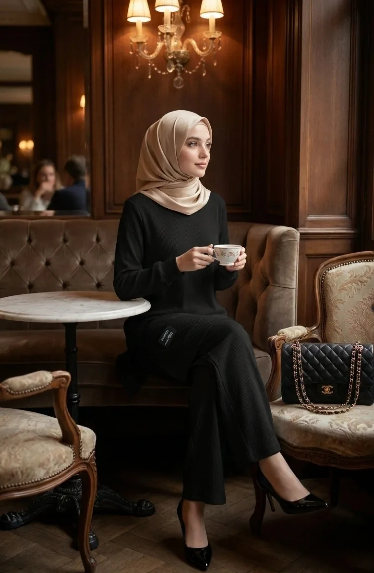 Couleur Noire. Tissu de coton. Simple. Tunique. Col Zéro. Adapté pour les 4 saisons. Option de grande taille disponible.