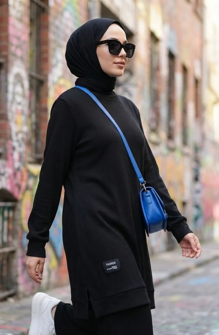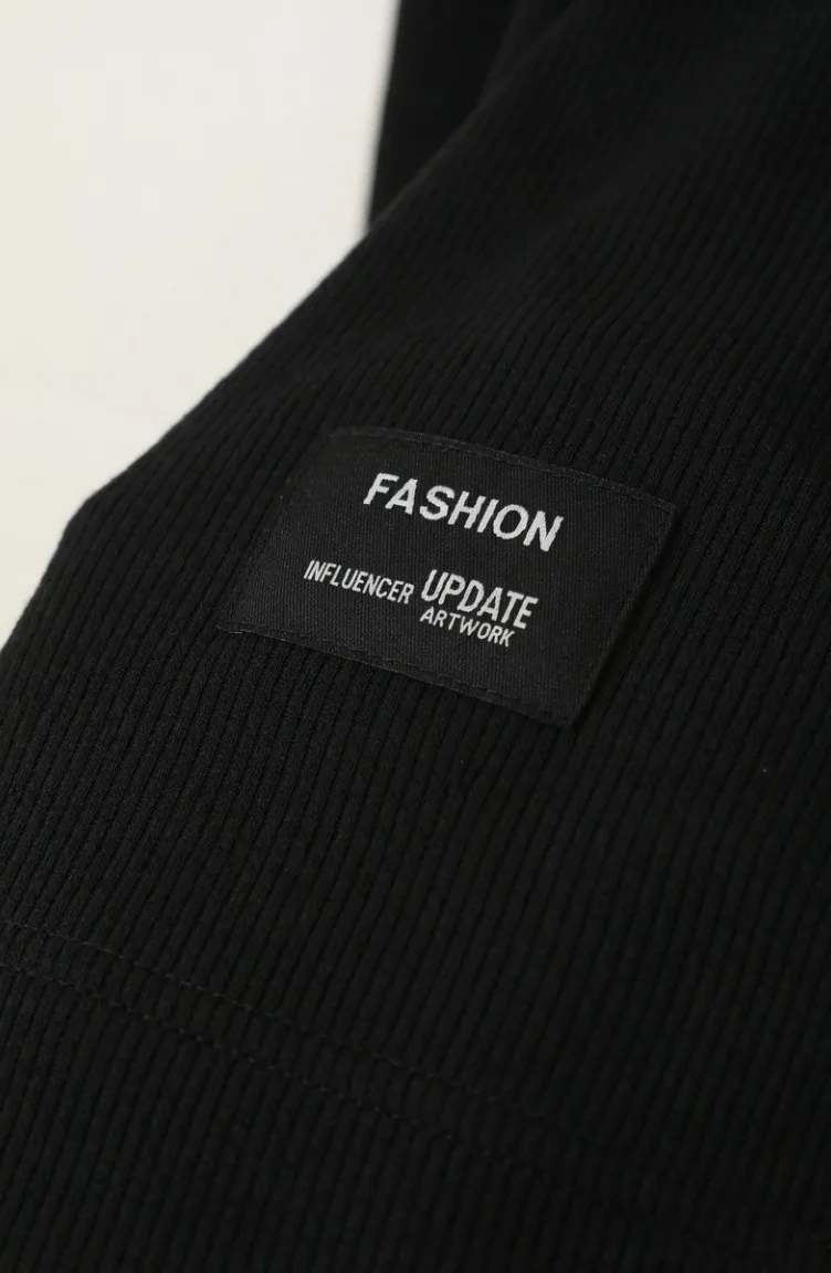 Ensemble Deux Pièces Tunique Et Pantalon Côtelés à Emblème Détaillé 0232-01 Noir 0232-01