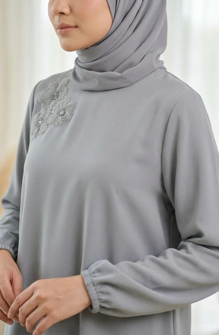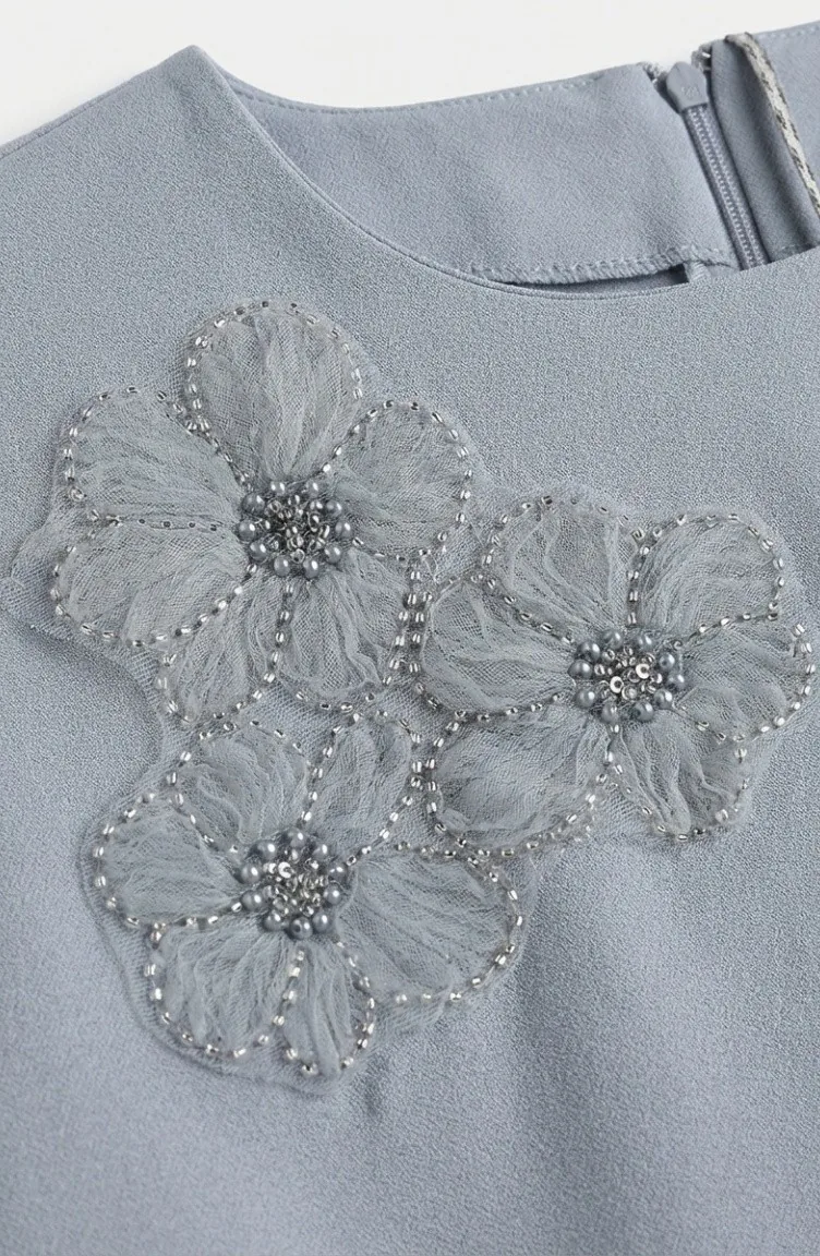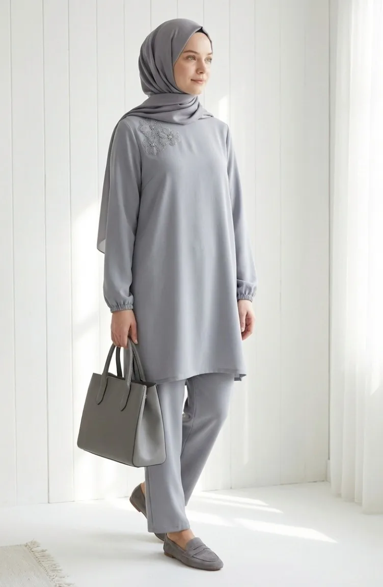 Ensemble Deux Pièces Tunique Et Pantalon Orné De Pierres 0230-04 Gris 0230-04