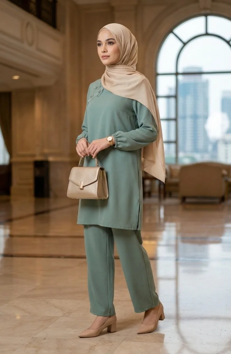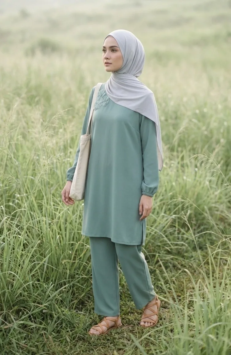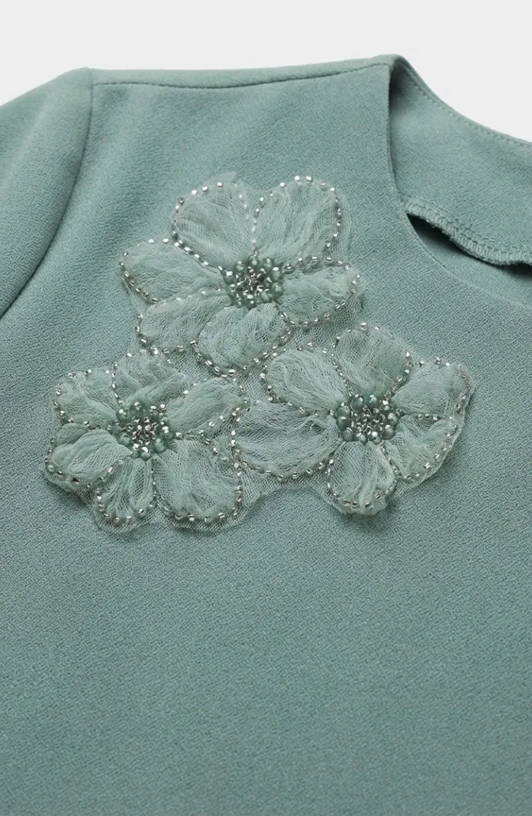 Ensemble Deux Pièces Tunique Et Pantalon Orné De Pierres 0230-05 Vert Clair 0230-05