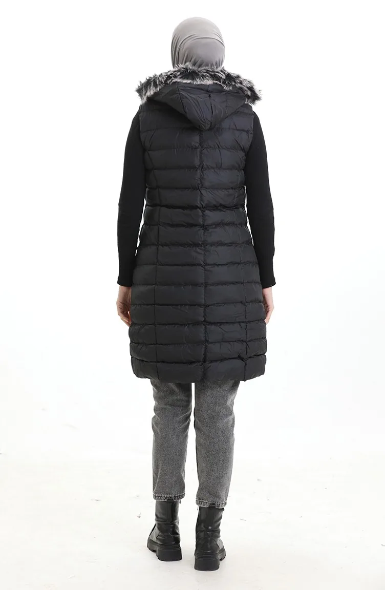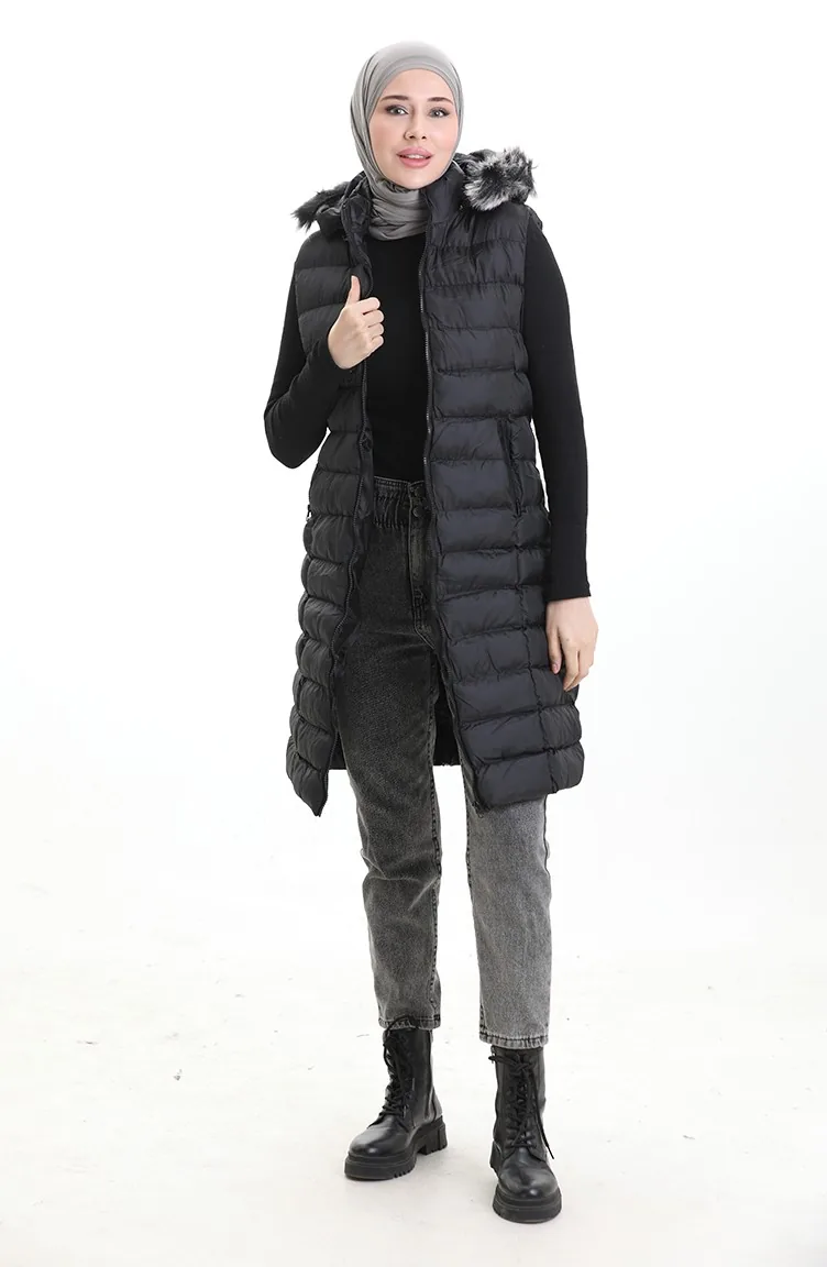 Gilet Matelassé à Capuche Et Fermeture éclair 0169B-01 Noir 0169B-01
