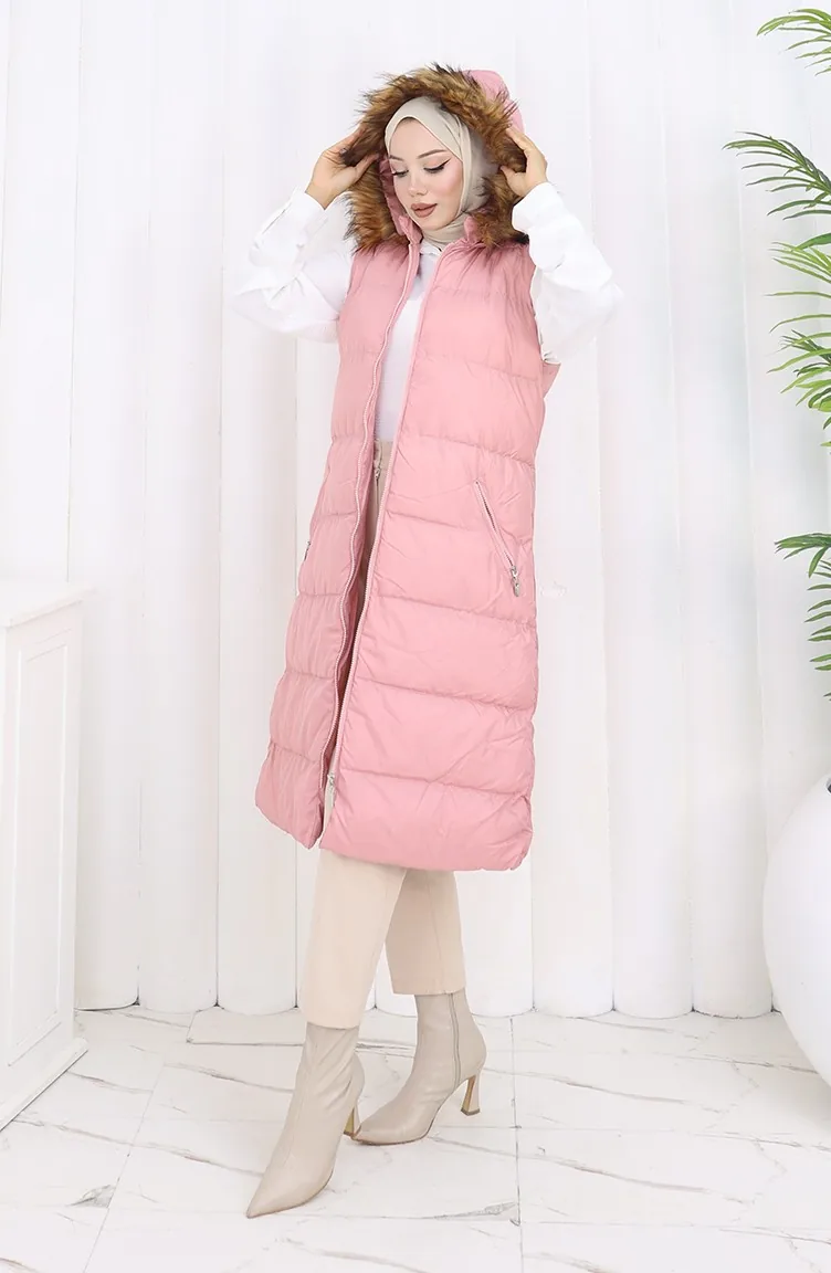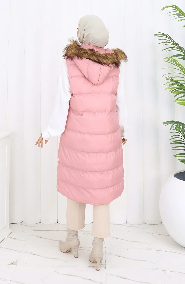 Gilet Matelassé à Capuche Et Fermeture éclair 0171-01 Poudre 0171-01