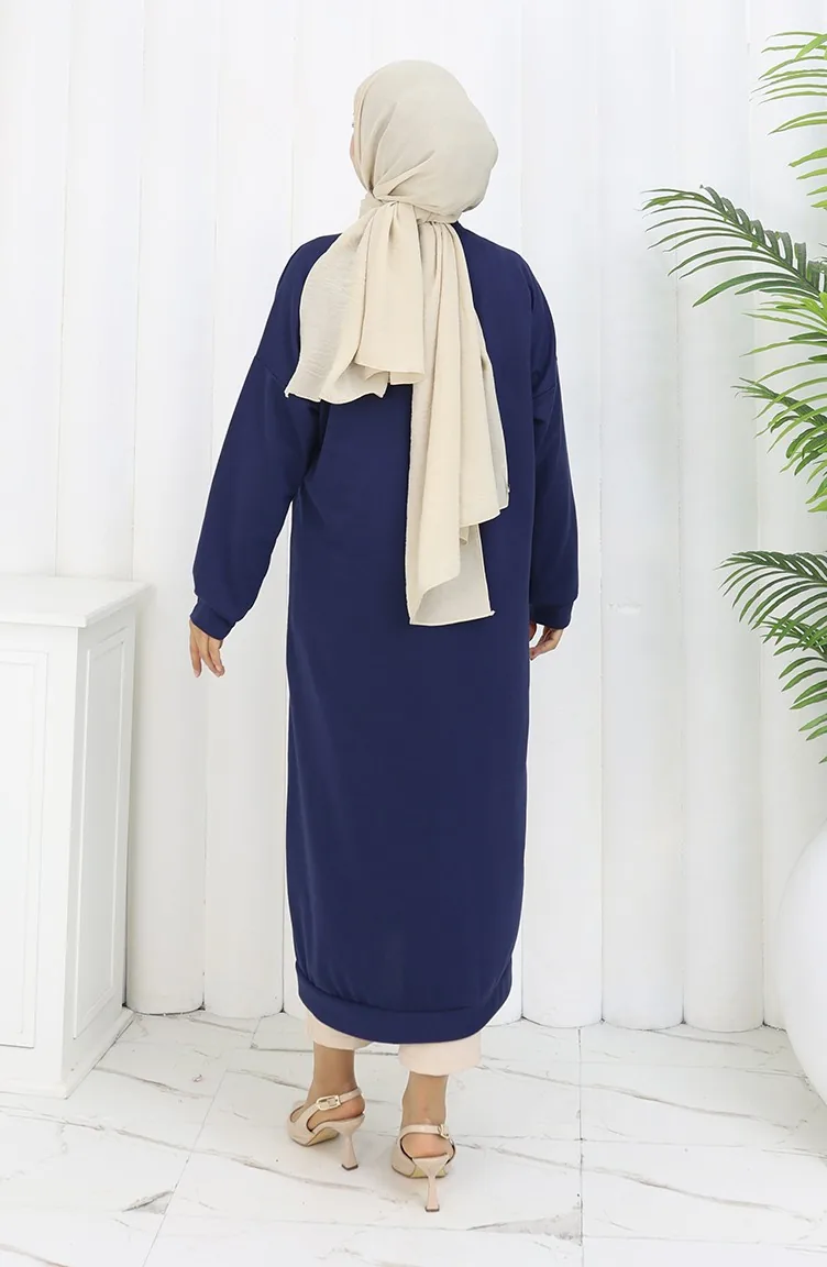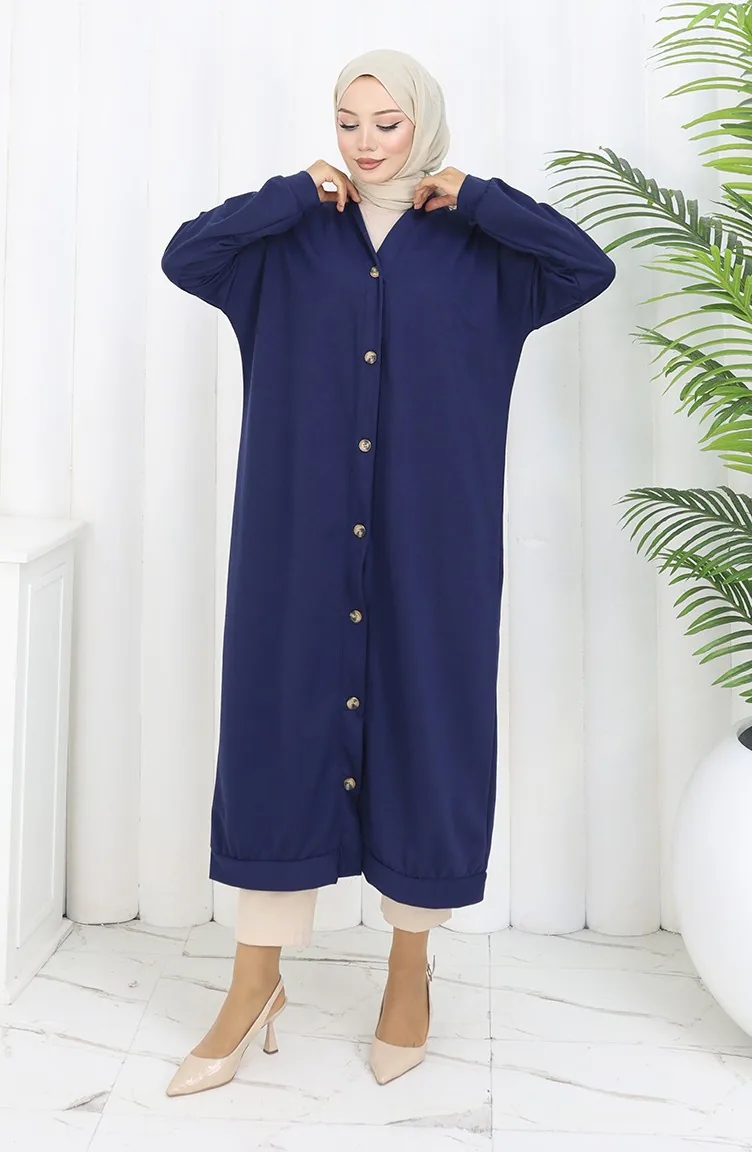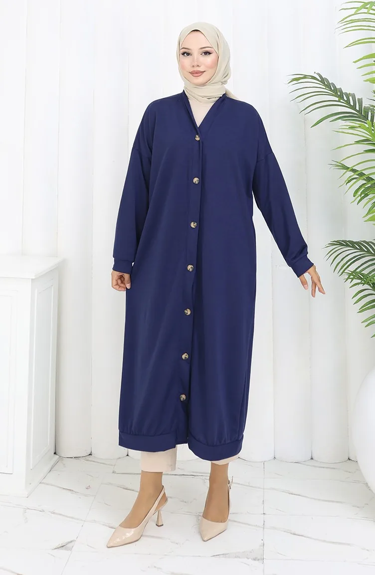 Cardigan Long Boutonné à Double Fil 0181-03 Bleu Marine 0181-03