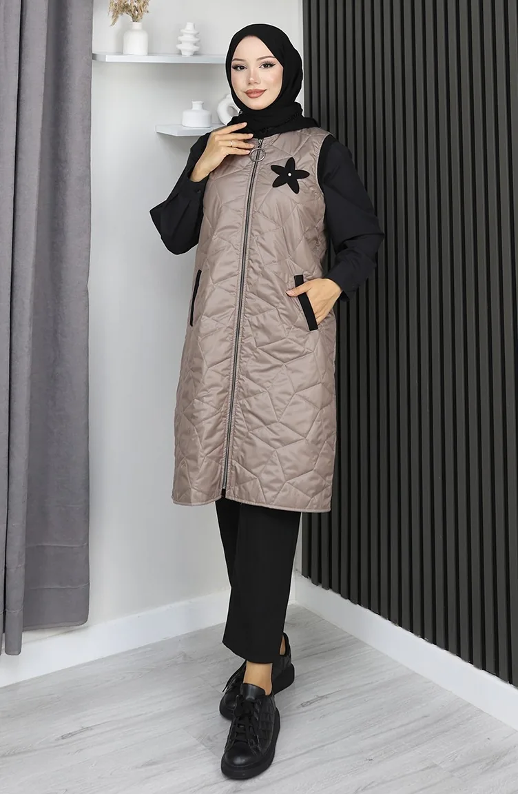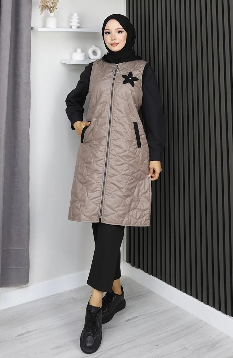 Gilet Matelassé à Capuche Et Fermeture éclair 5108-01 Vison 5108-01