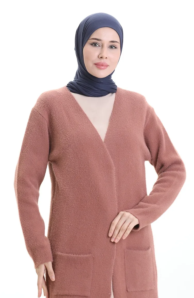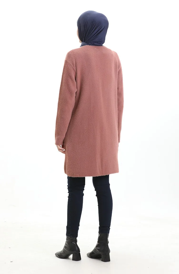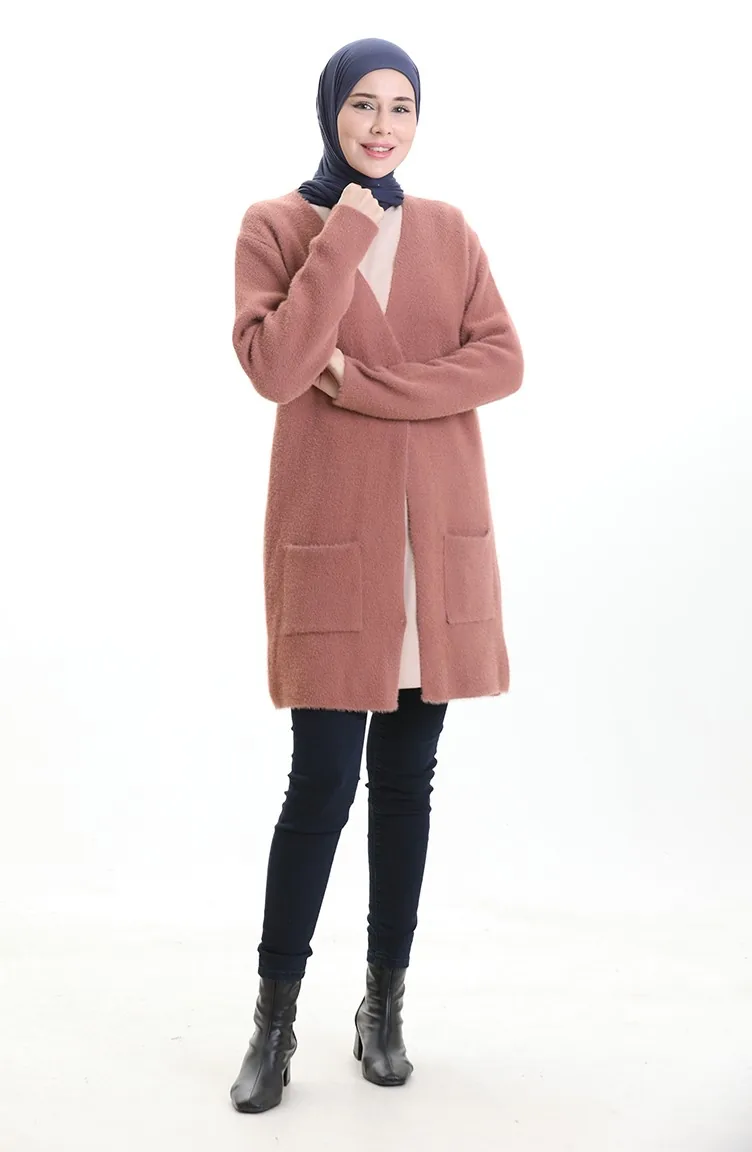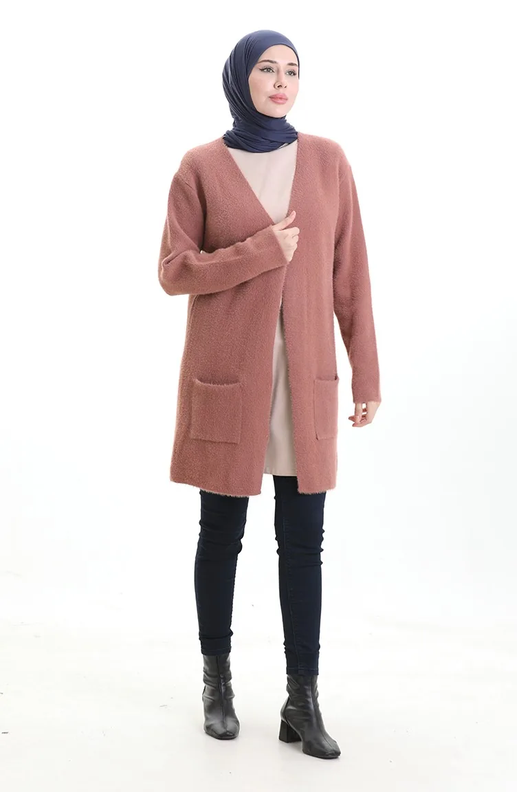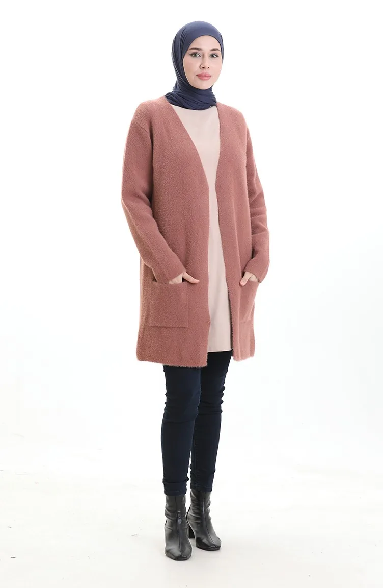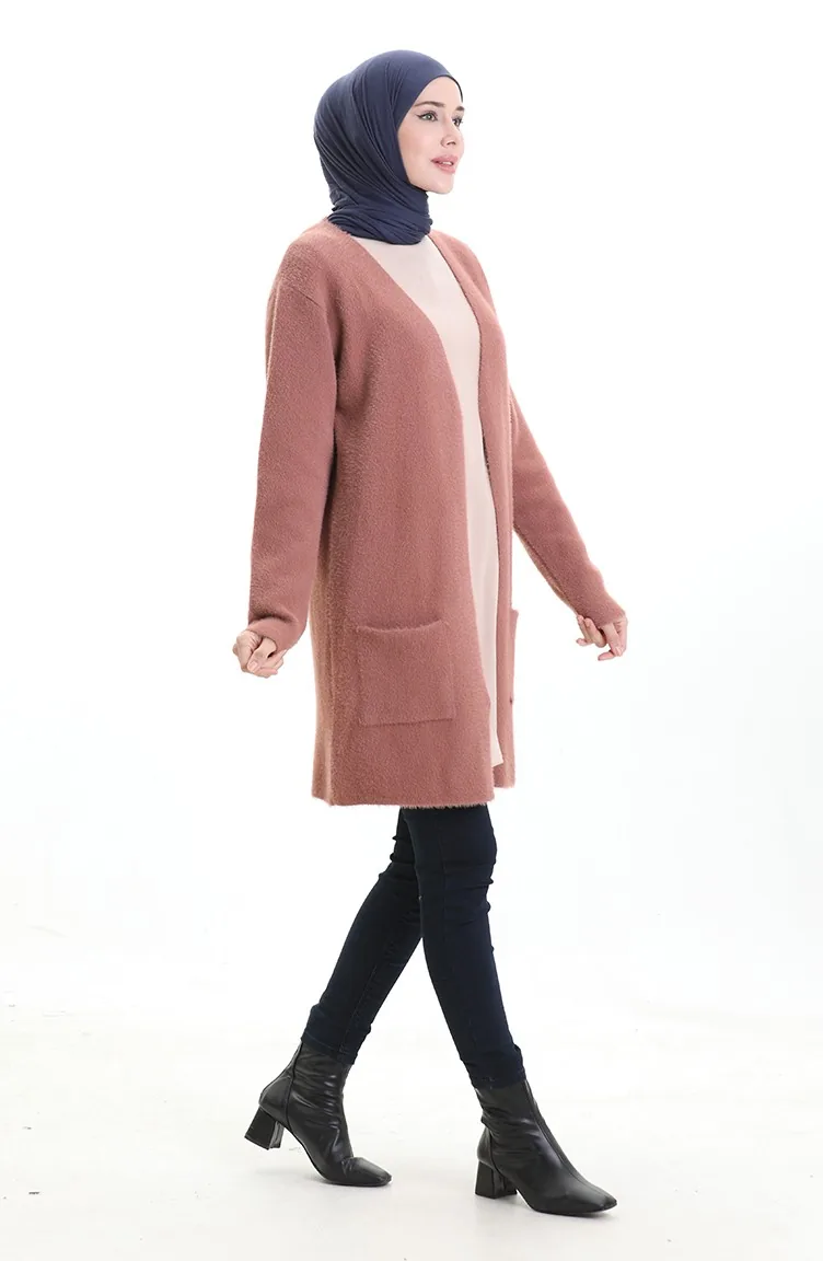 Cardigan à Poche En Tricot 0412-06 Rose Poudré 0412-06