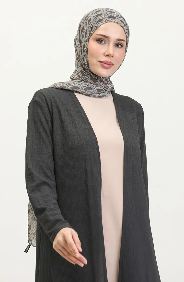 Couleur antracite. Tissu Crêpe Tricotée. Simple. Le produit est avec manche. Saisonnier. Option de grande taille disponible.