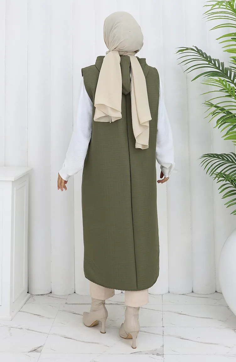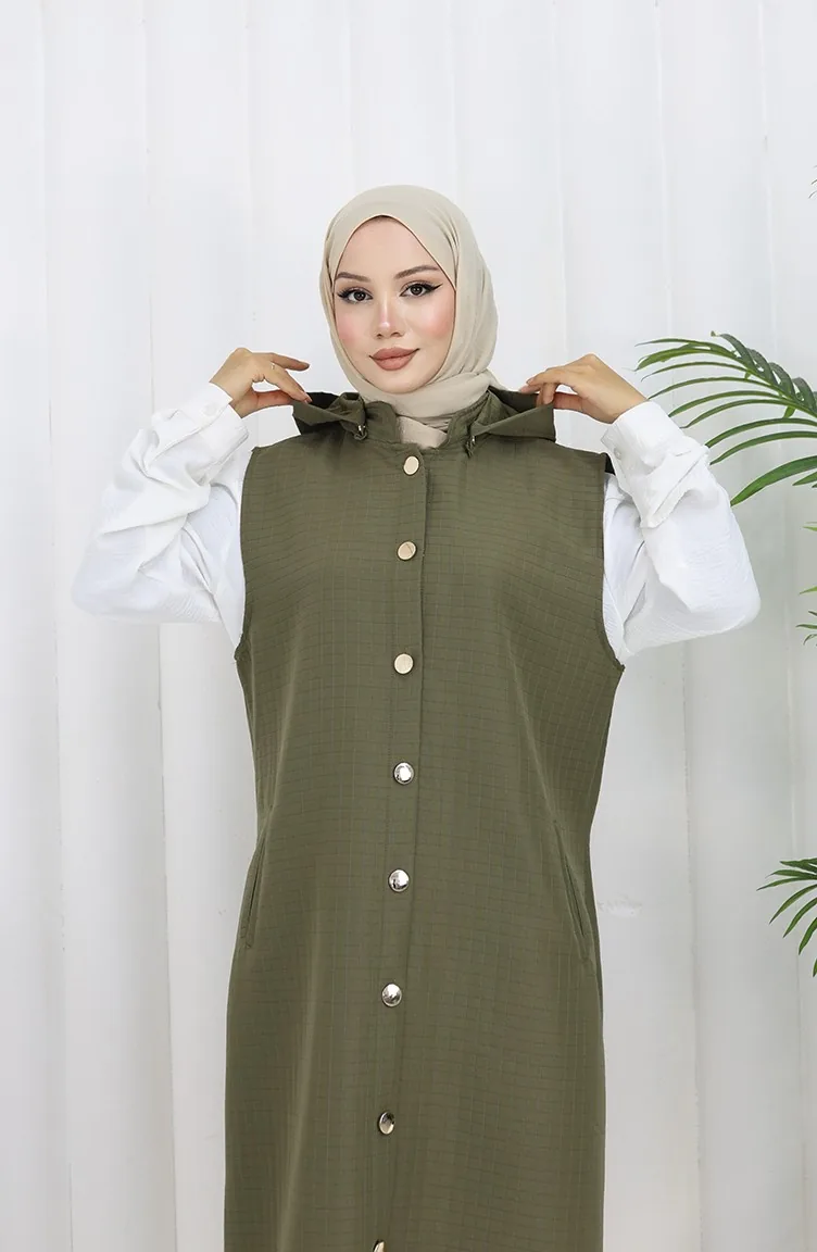 Gilet Boutonné En Tissu Matelassé 0186-02 Kaki 0186-02