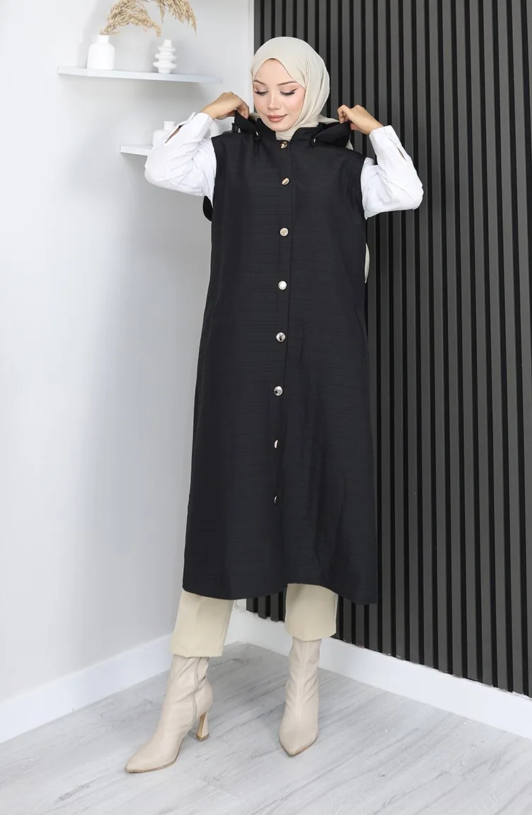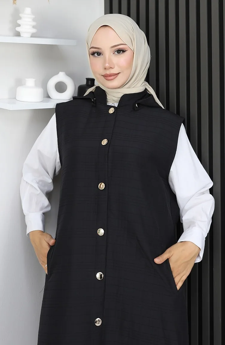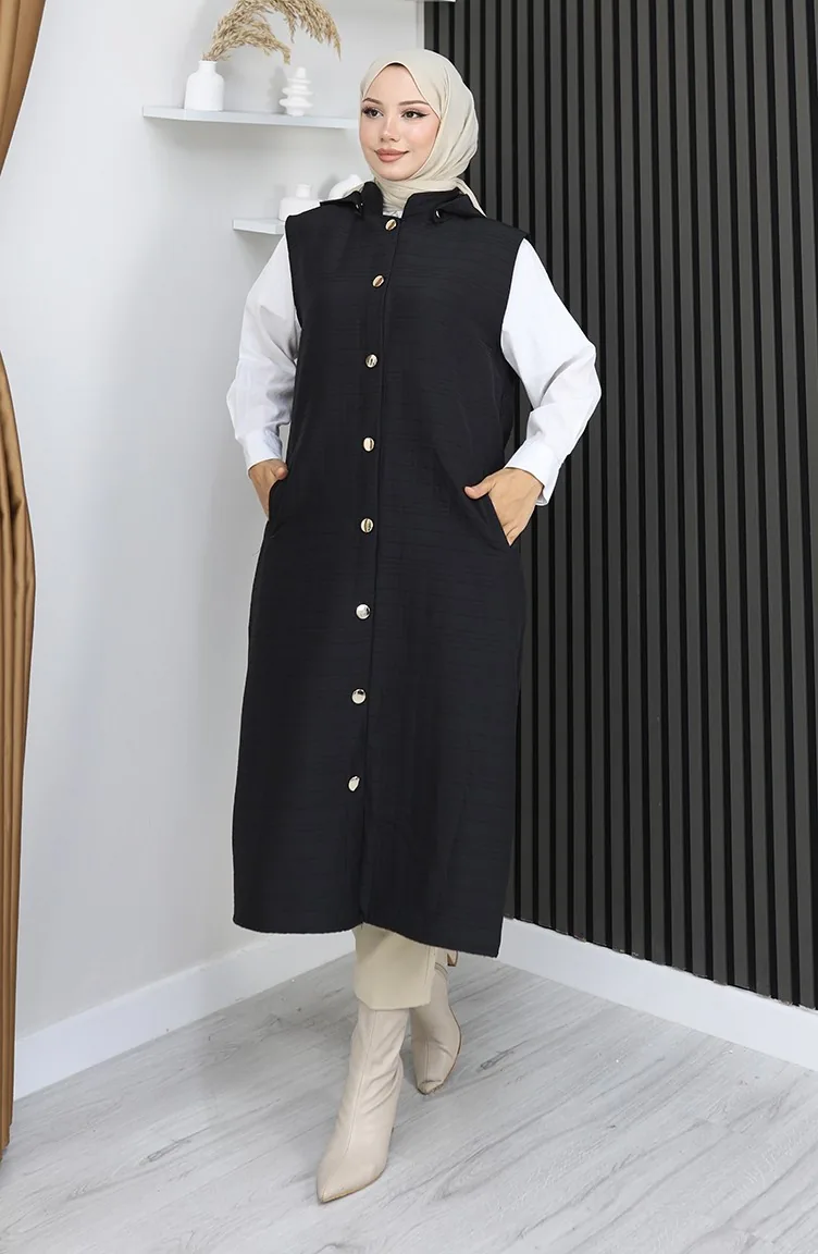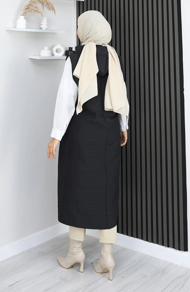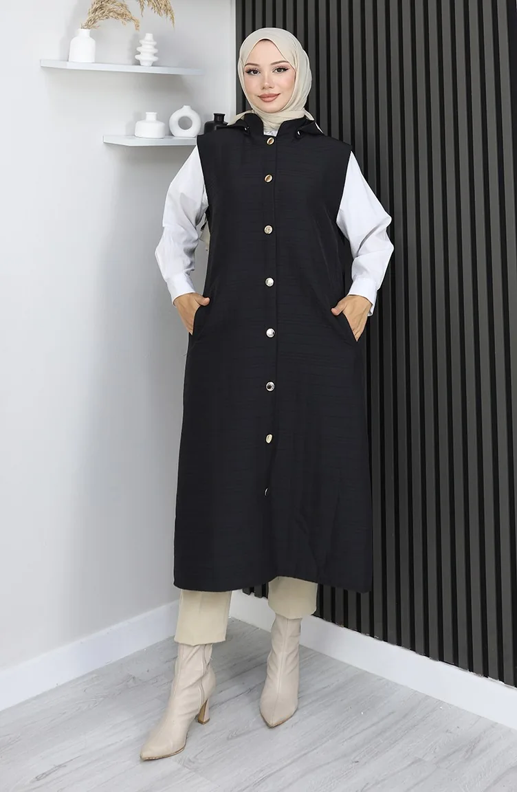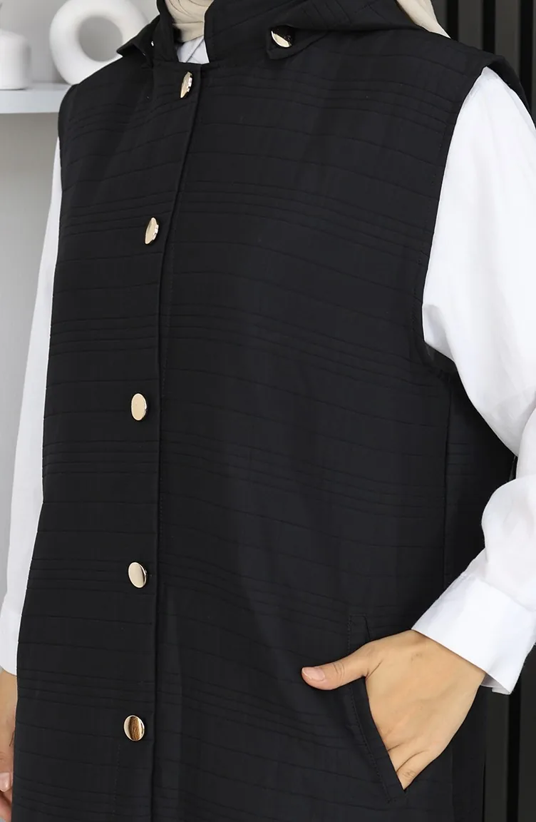 Gilet Boutonné En Tissu Matelassé 0186A-05 Noir 0186A-05