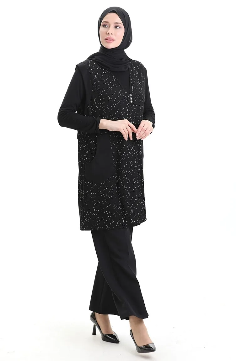 Gilet Boutonné Jacquard 994727F-01 Noir 994727F-01
