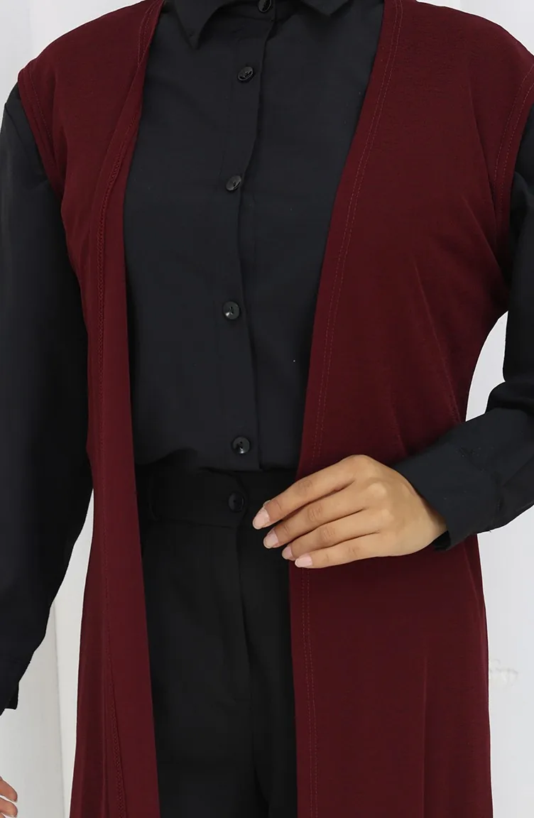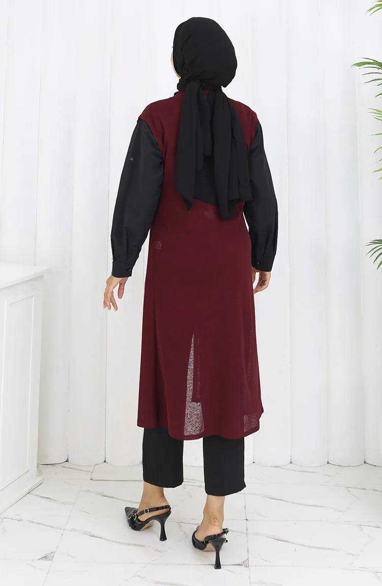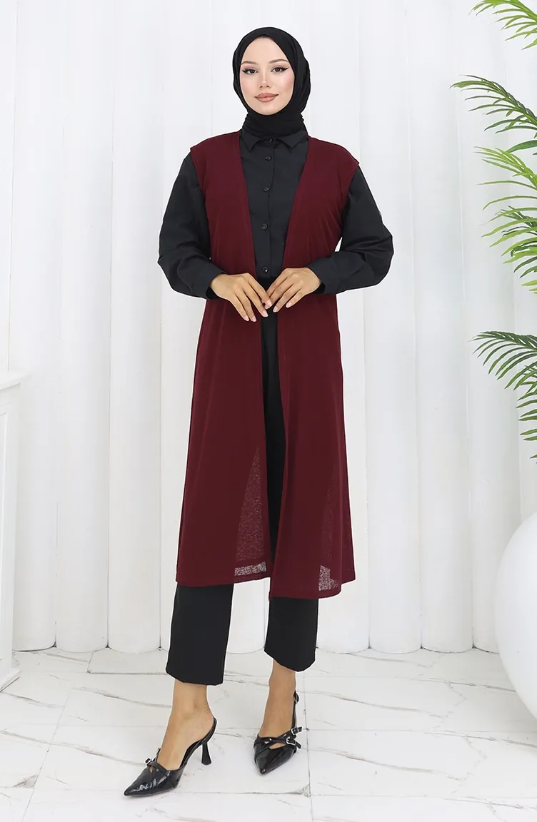 Gilet Simple Fin Et Basique Long Pour Femme Grande Taille 8763-02 Prune 8763-02