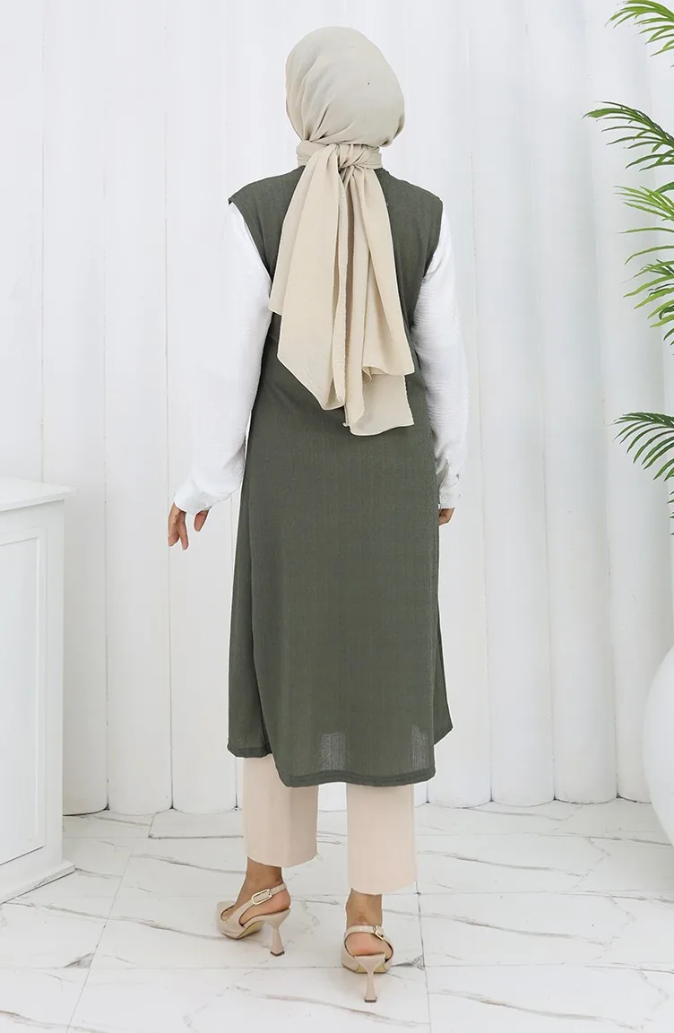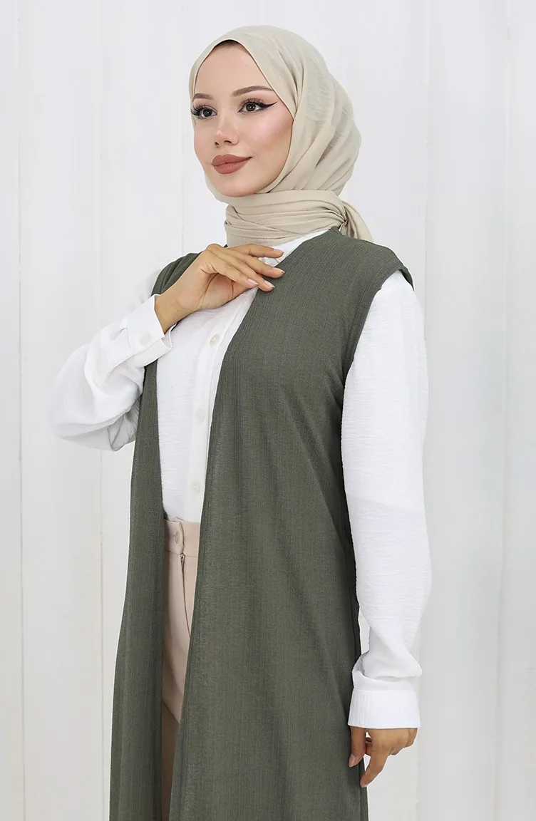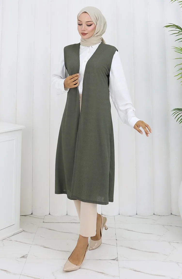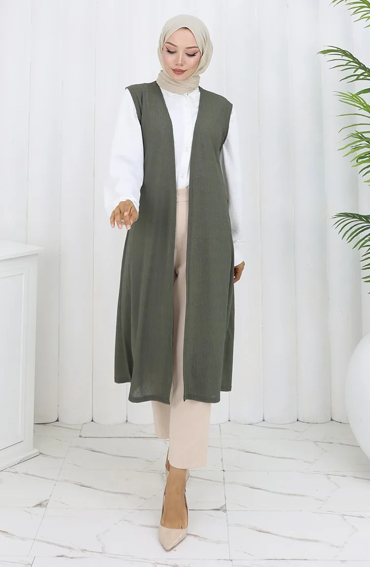 Gilet Simple Fin Et Basique Long Pour Femme Grande Taille 8763-04 Kaki 8763-04