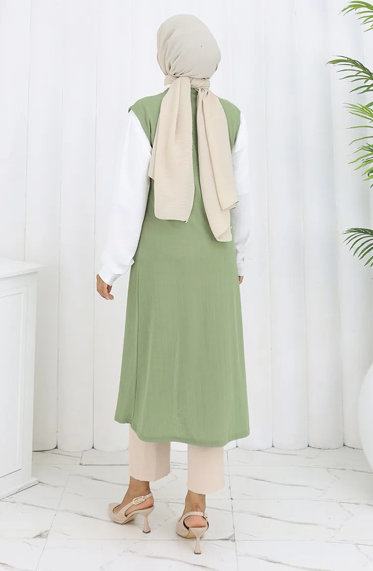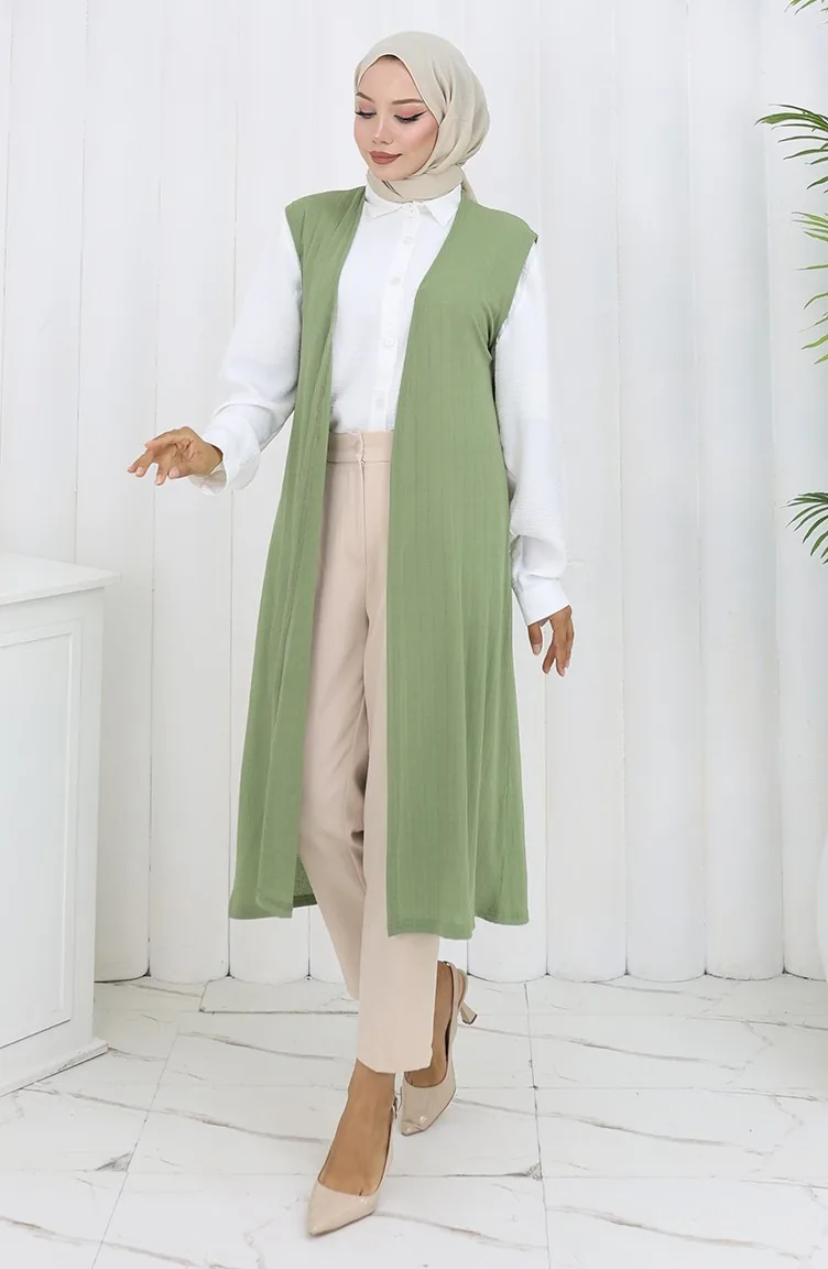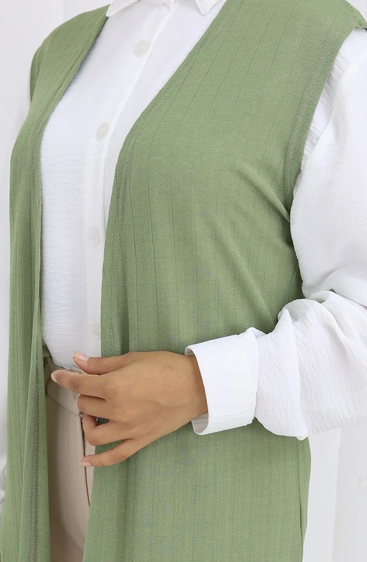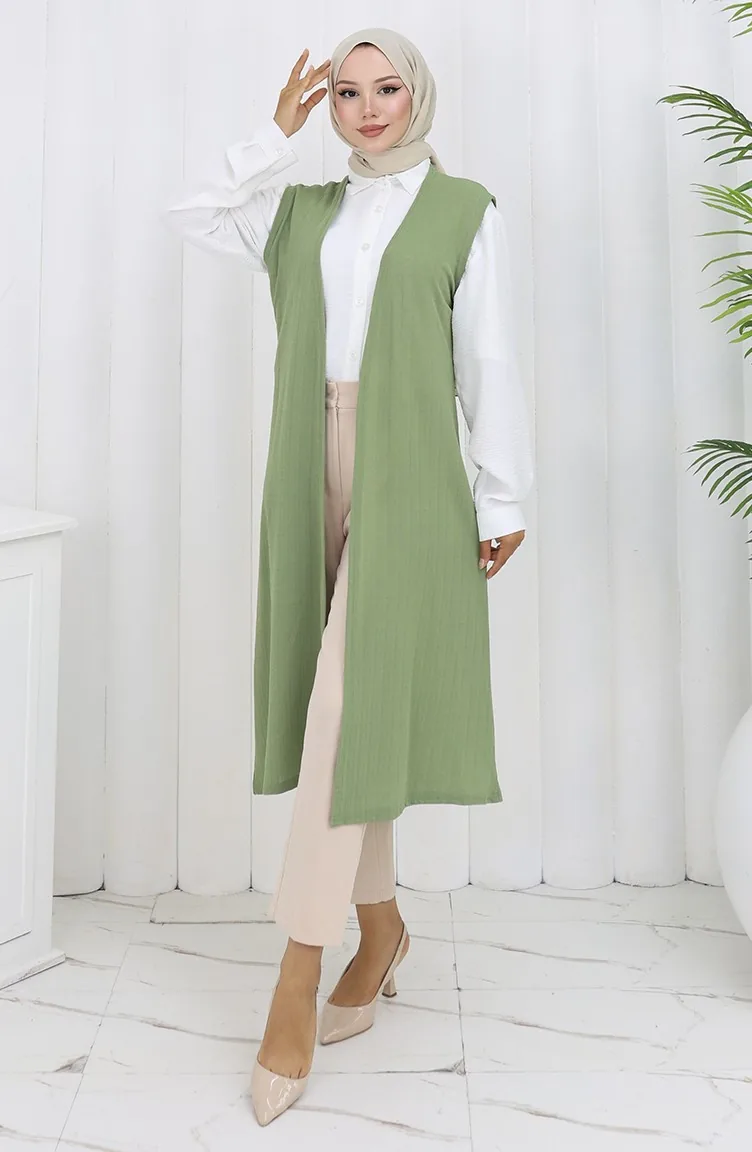 Gilet Simple Fin Et Basique Long Pour Femme Grande Taille 8763-06 Vert 8763-06