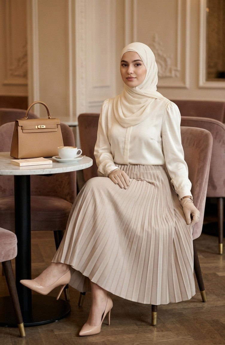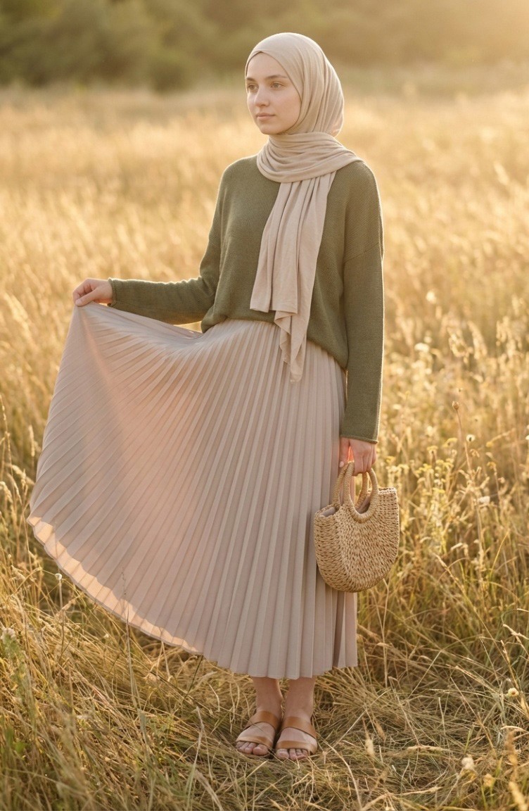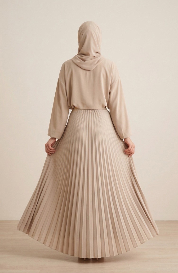 Jupe Plissée à Taille élastique 0213-12 Vison 0213-12