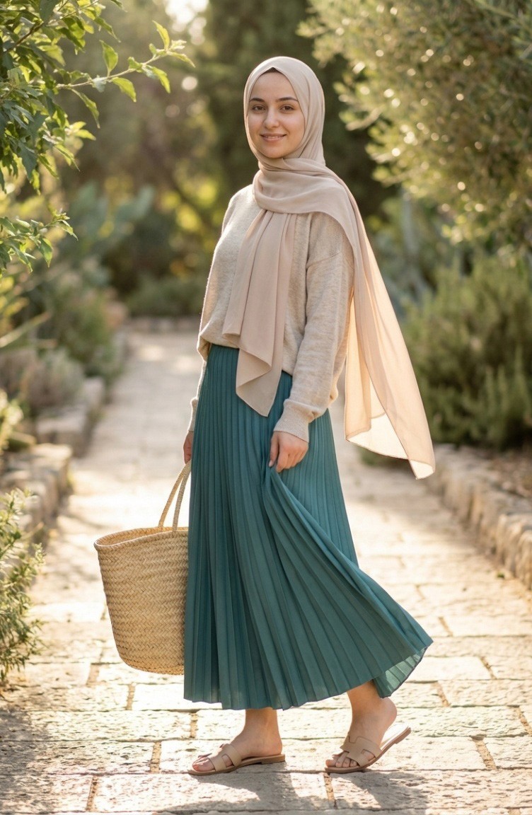 Couleur Vert noisette. Tissu polyester. Simple. Détail élastique. Adapté pour les 4 saisons. Produit porté par le mannequin est sa propre taille.