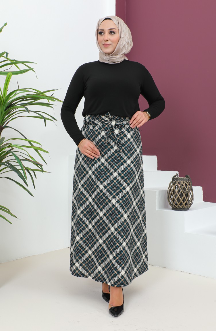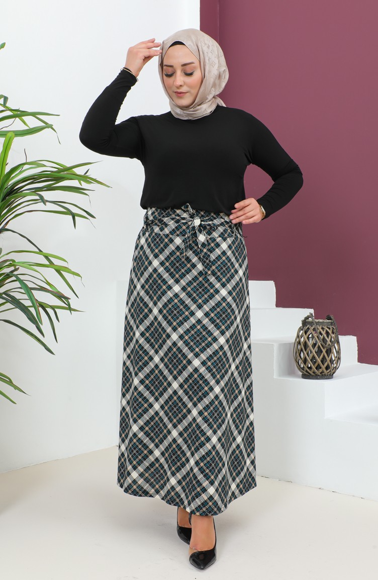 Jupe Evasée à Motifs Grande Taille 4205B-03 Noir Pétrole 4205B-03