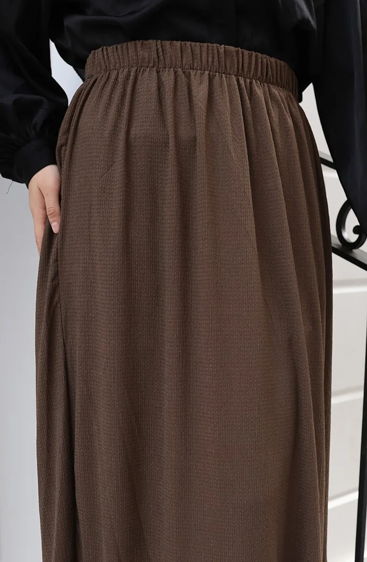 Jupe Coupe Décontractée à Taille élastique 0227C-01 Marron 0227C-01