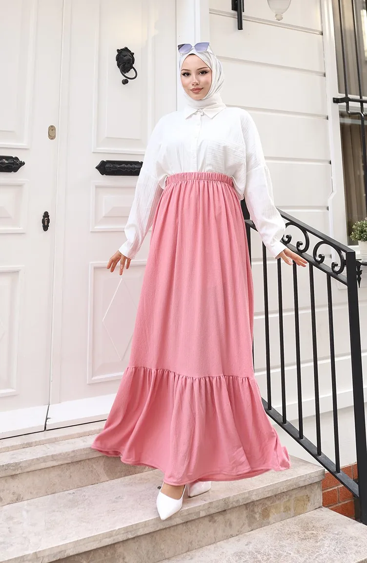 Jupe Coupe Décontractée à Taille élastique 0227C-03 Rose 0227C-03
