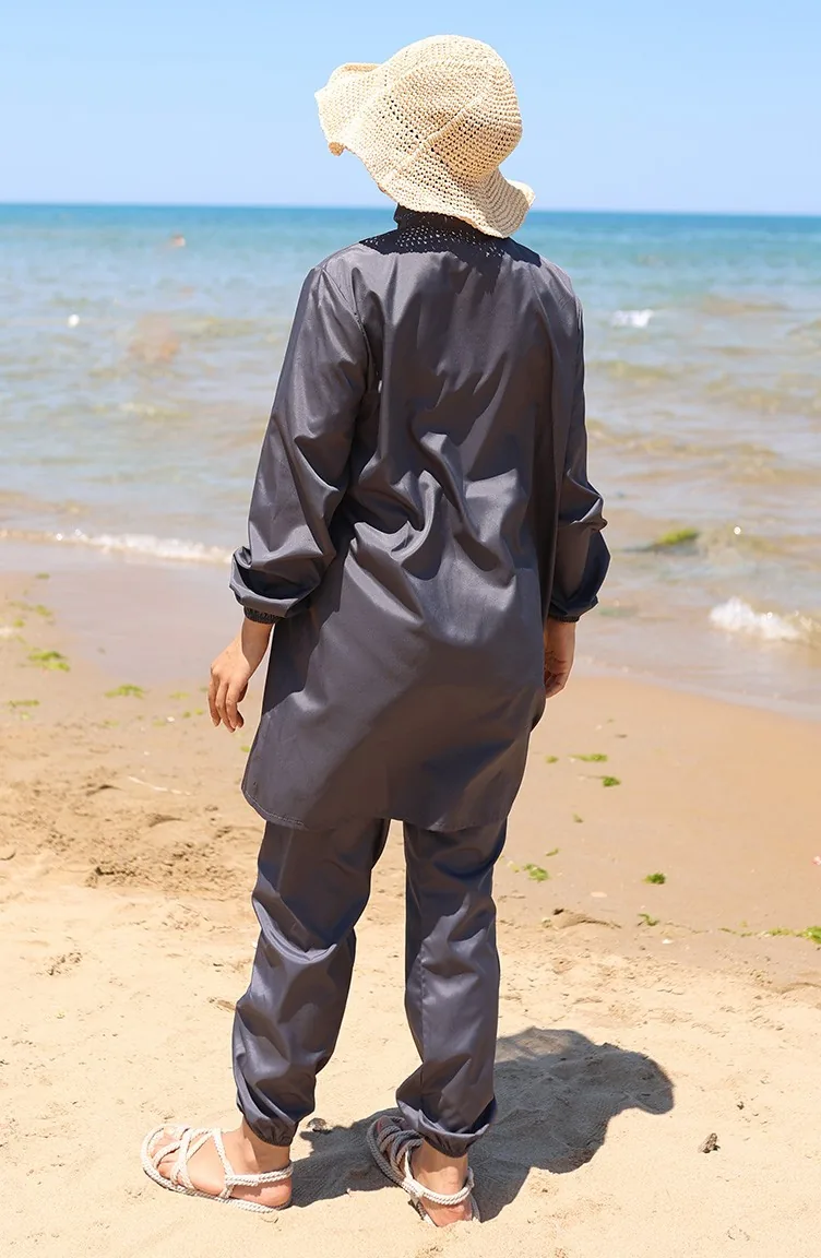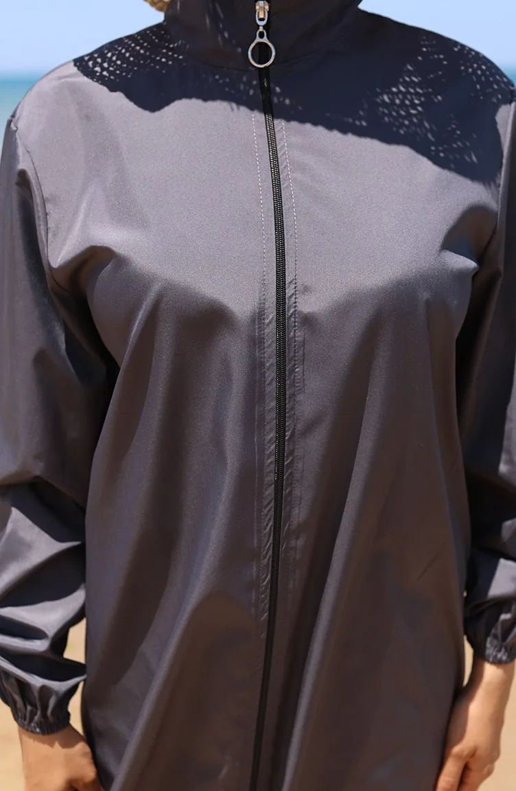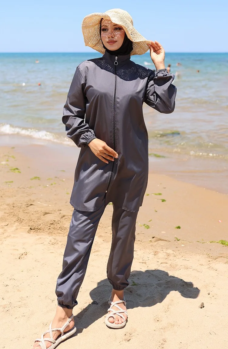 Maillot De Bain Hijab Zippé Atlas Lot De 2 Avec Bonnet 9006-03 Anthracite 9006-03