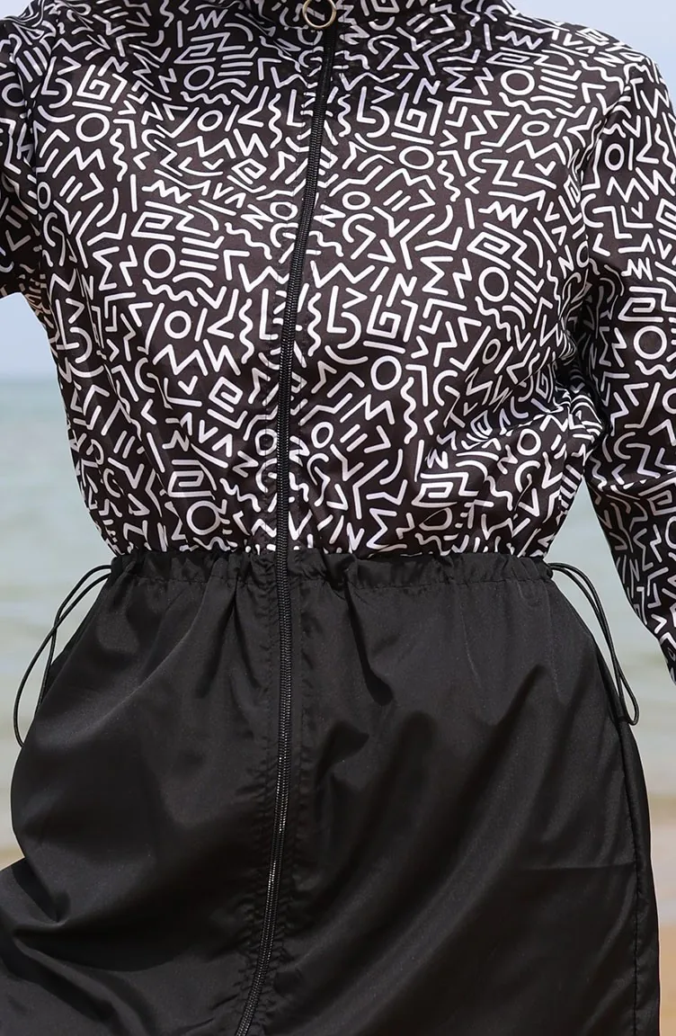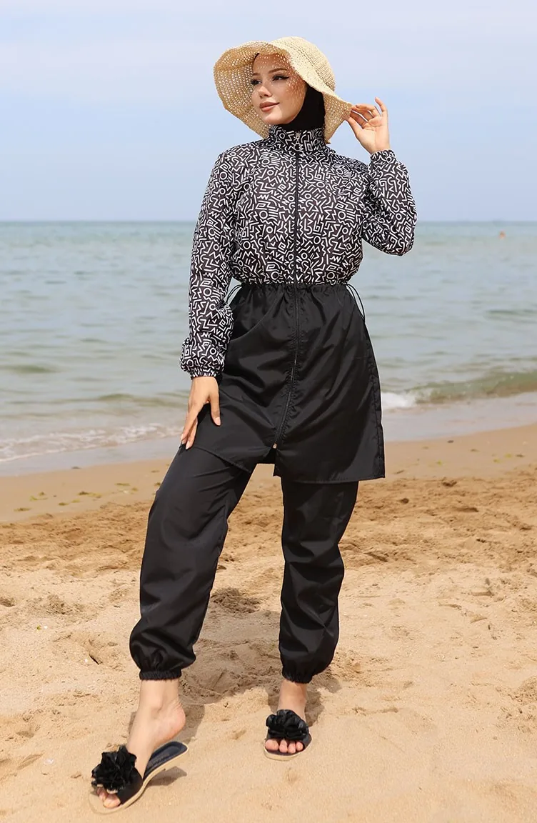 Selen Maillot De Bain Hijab Taille Elastique 5043-01 Noir Blanc 5043-01