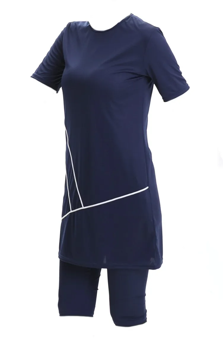 Maillot De Bain De Piscine à Manches Courtes 2501-02 Bleu Marine 2501-02
