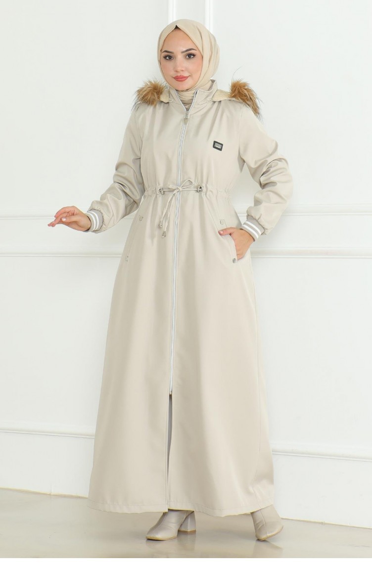 Manteau Côtelé à Taille En Dentelle Beige 19215 15291