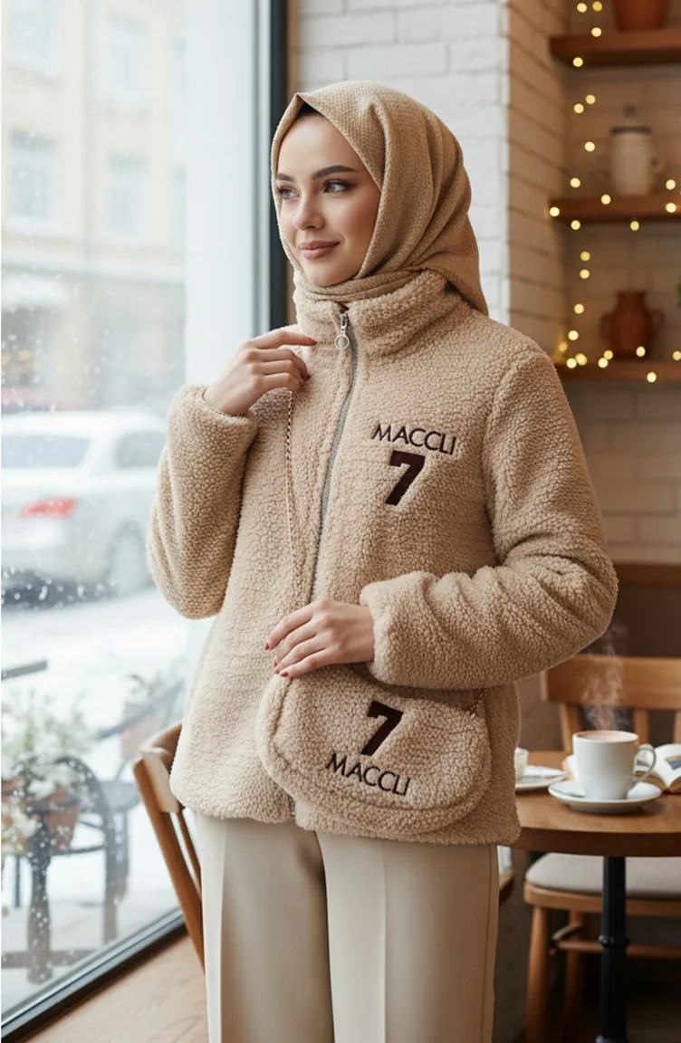 Veste En Peluche Avec Sac Zippé 6338-02 Vison 6338-02