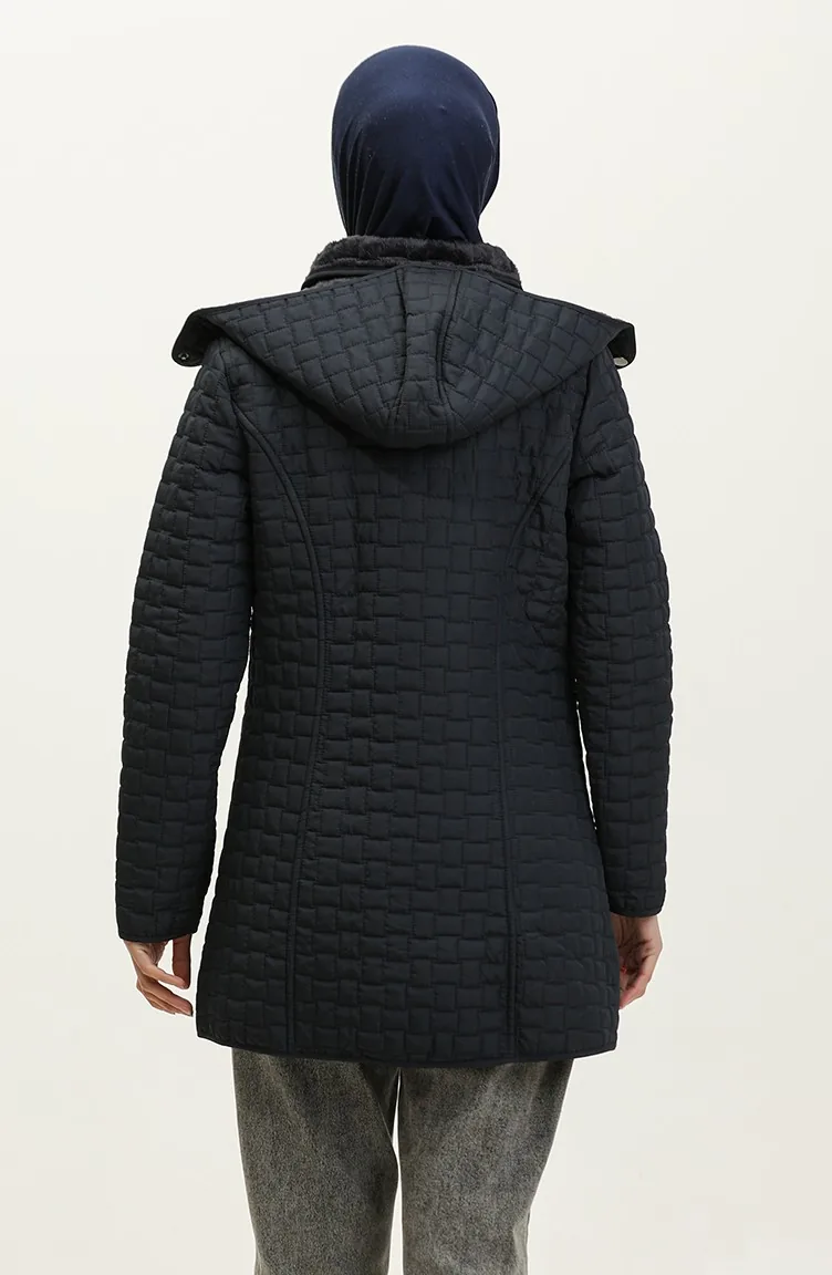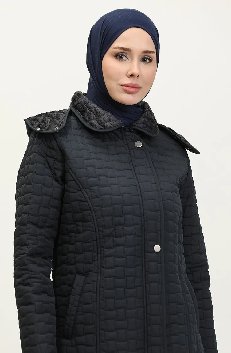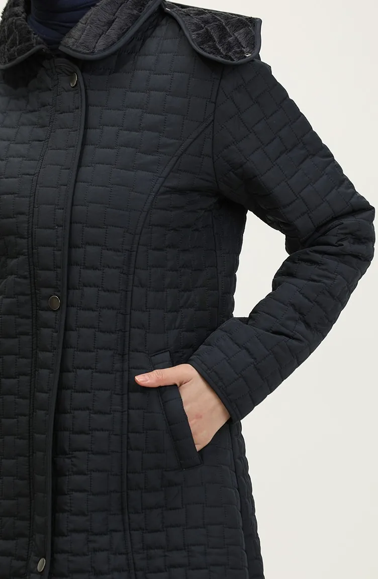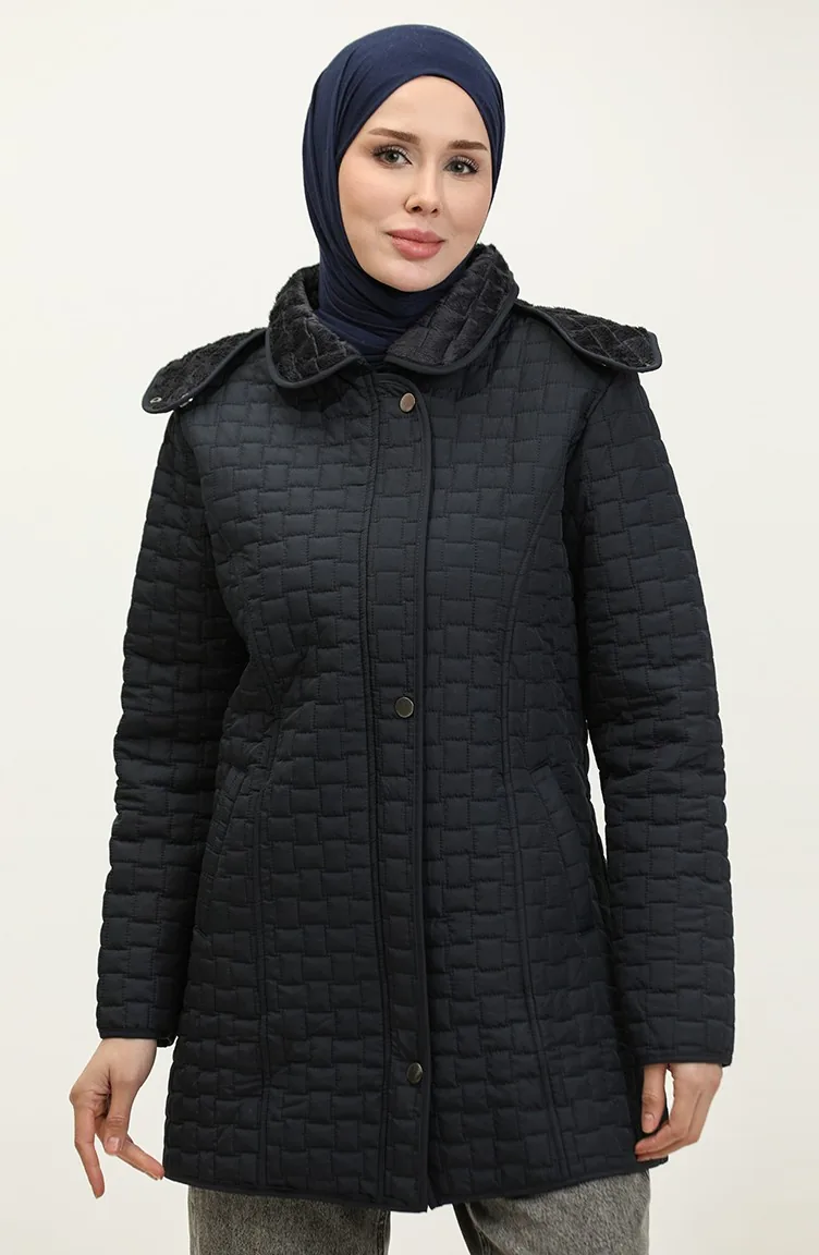 Manteau Matelassé à Capuche Grande Taille 4257-02 Bleu Marine 4257-02