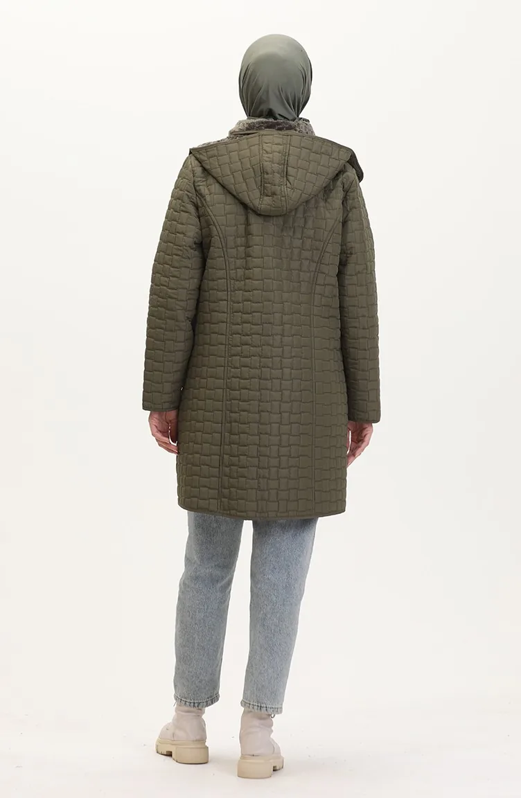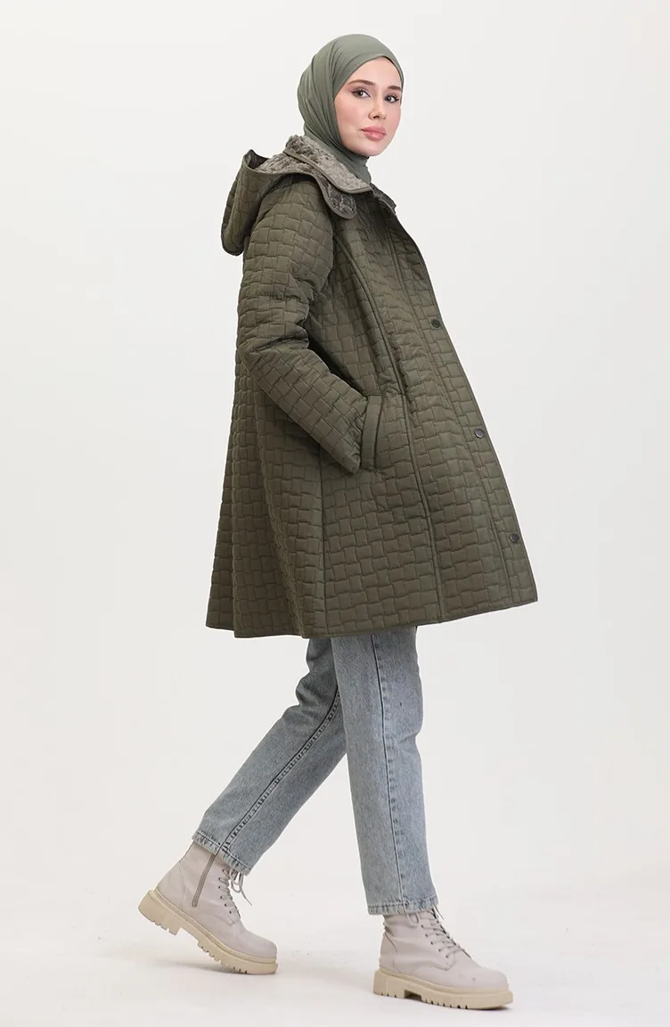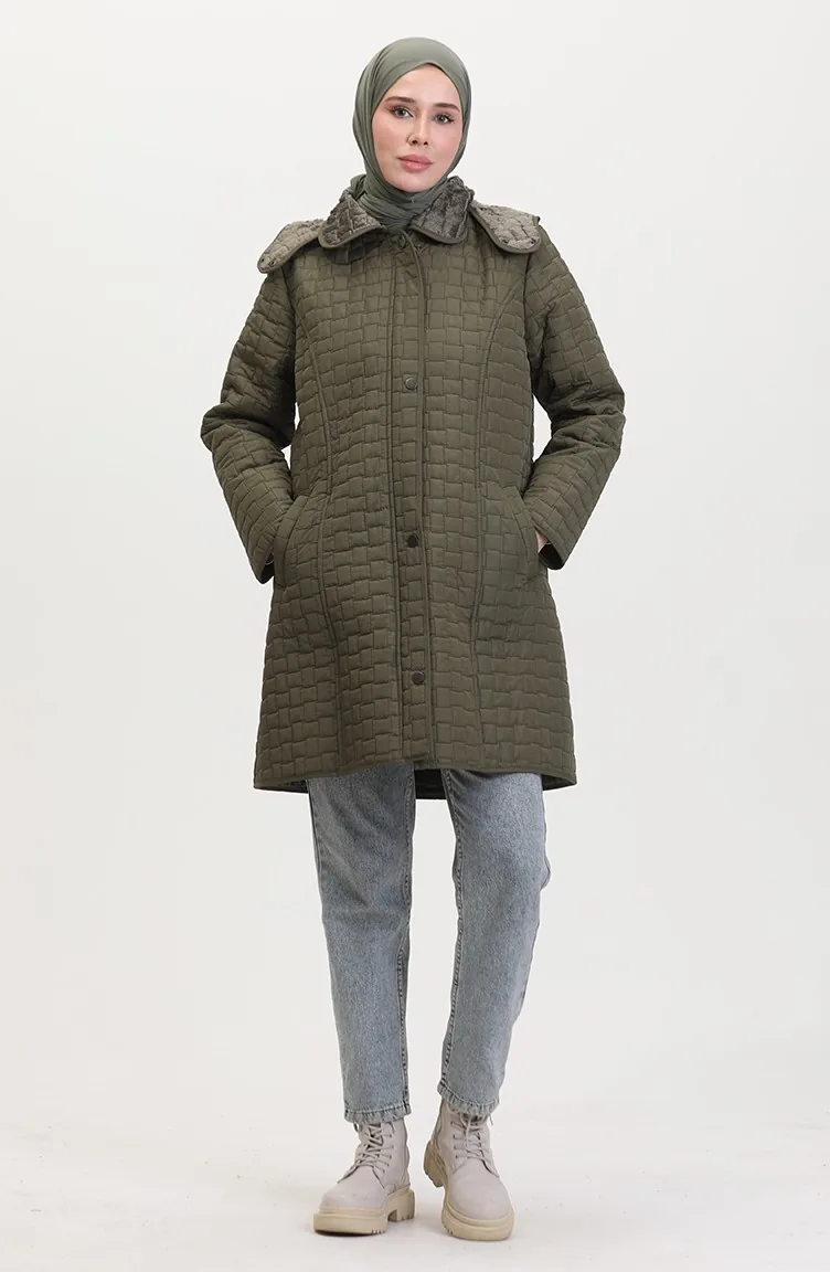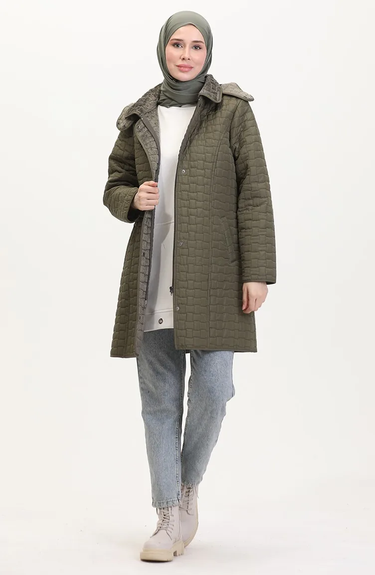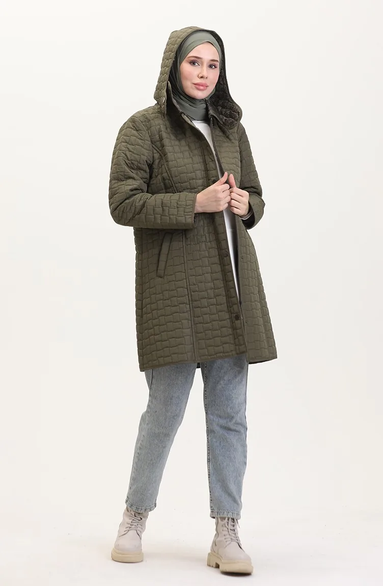 Manteau Matelassé à Capuche Grande Taille 6132-02 Khaki 6132-02