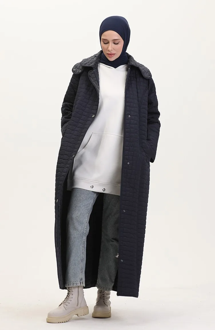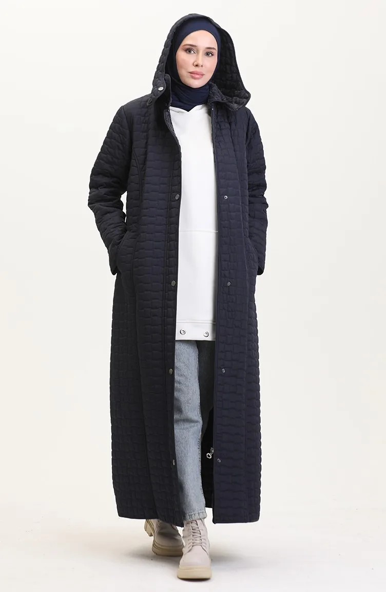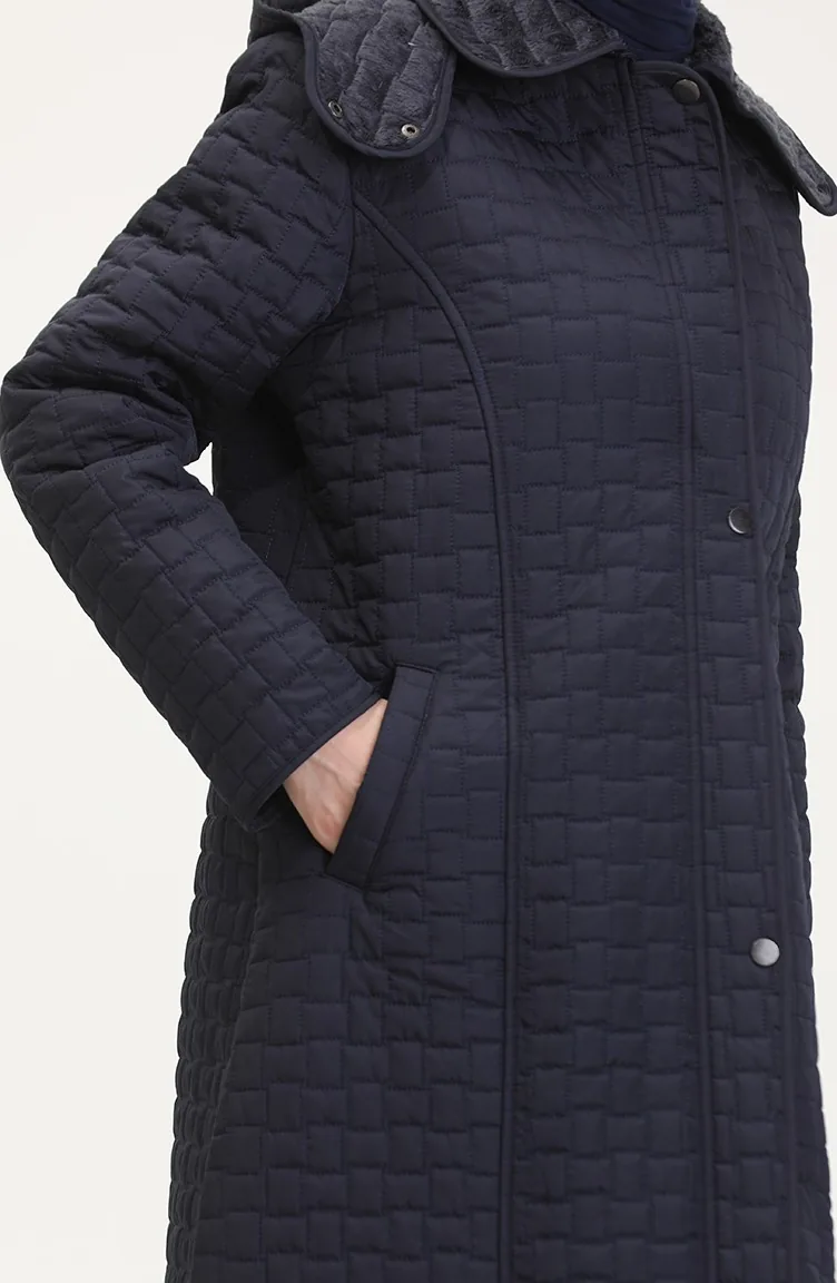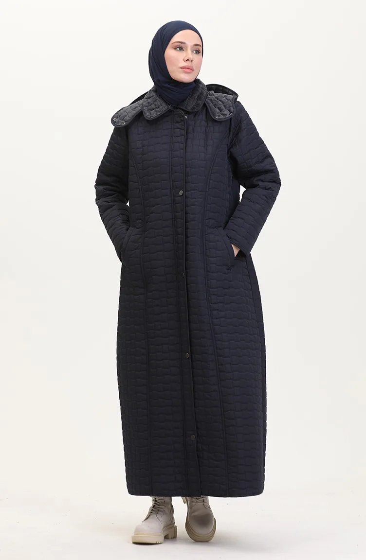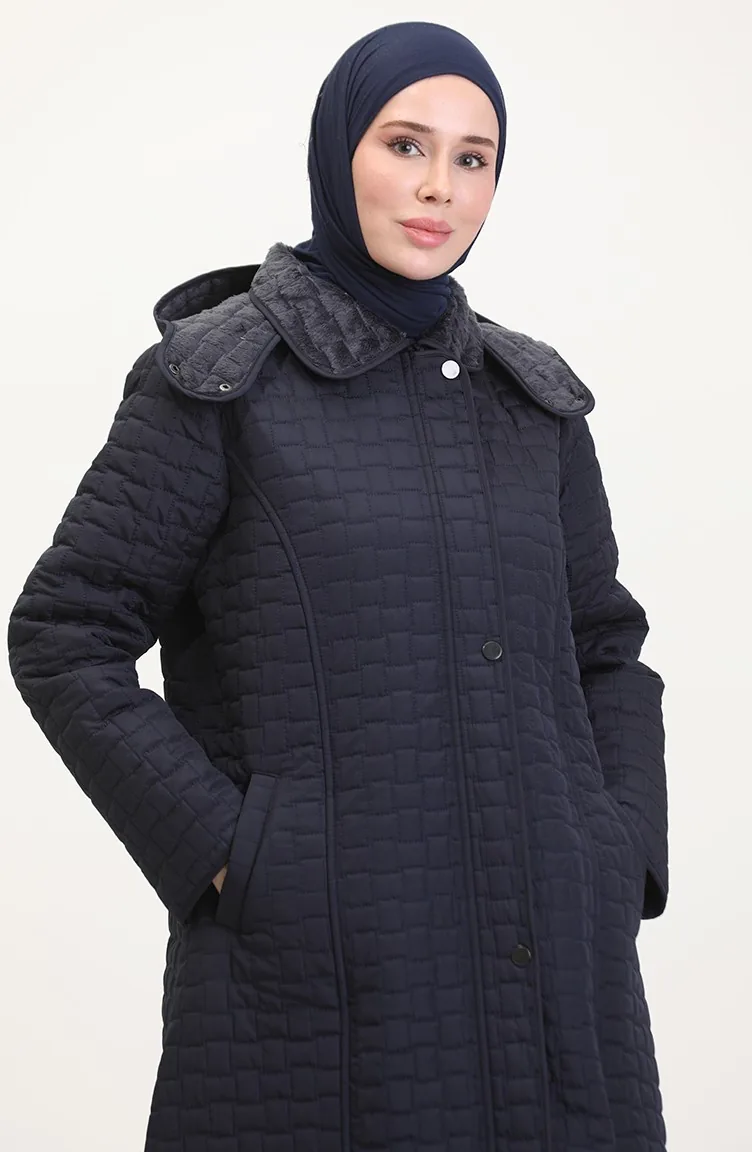 Manteau Matelassé à Capuche Grande Taille 6134-02 Bleu Marine 6134-02